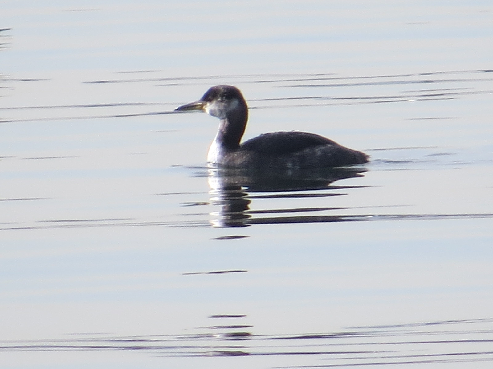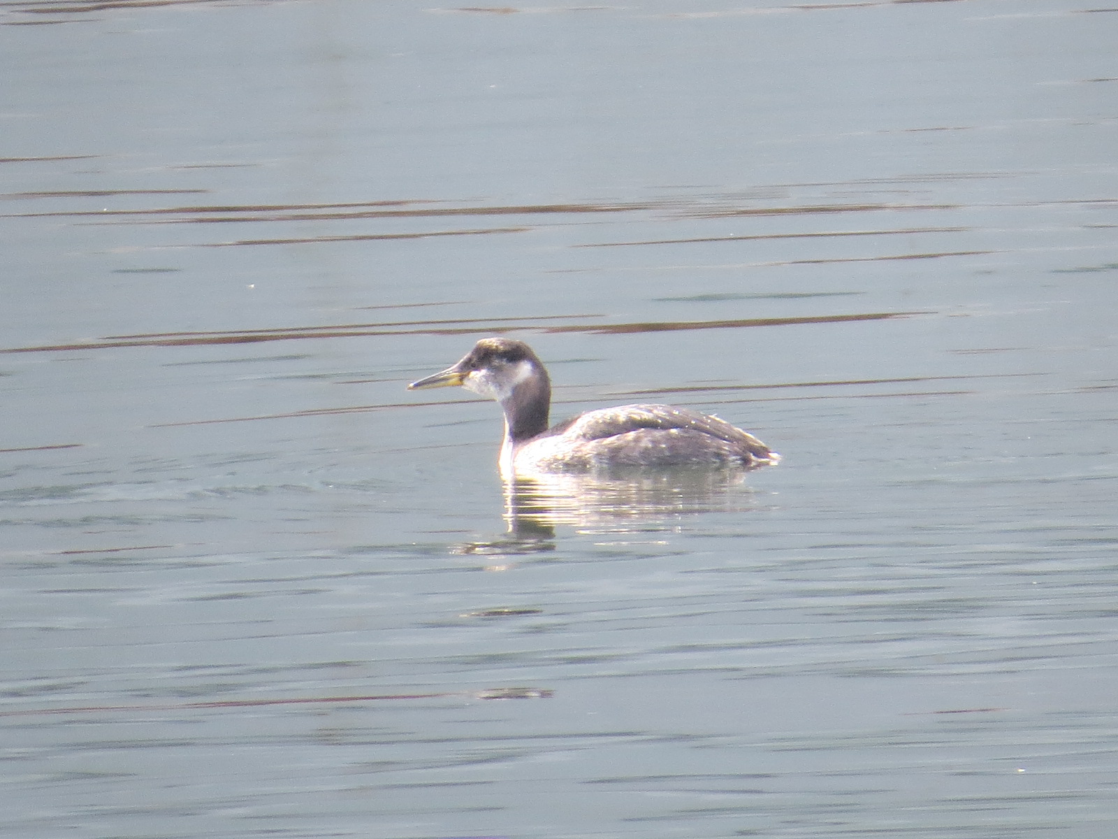 This Horned Grebe (Podiceps auritus) was sun-struck and near. Both of these species have very different breeding plumages, which they are named after (that’s not so helpful to those of us so far south of their breeding grounds). I saw the Horned Grebe (a.k.a the Slovenian Grebe) in breeding finery in Iceland and was astonished at the transformation.