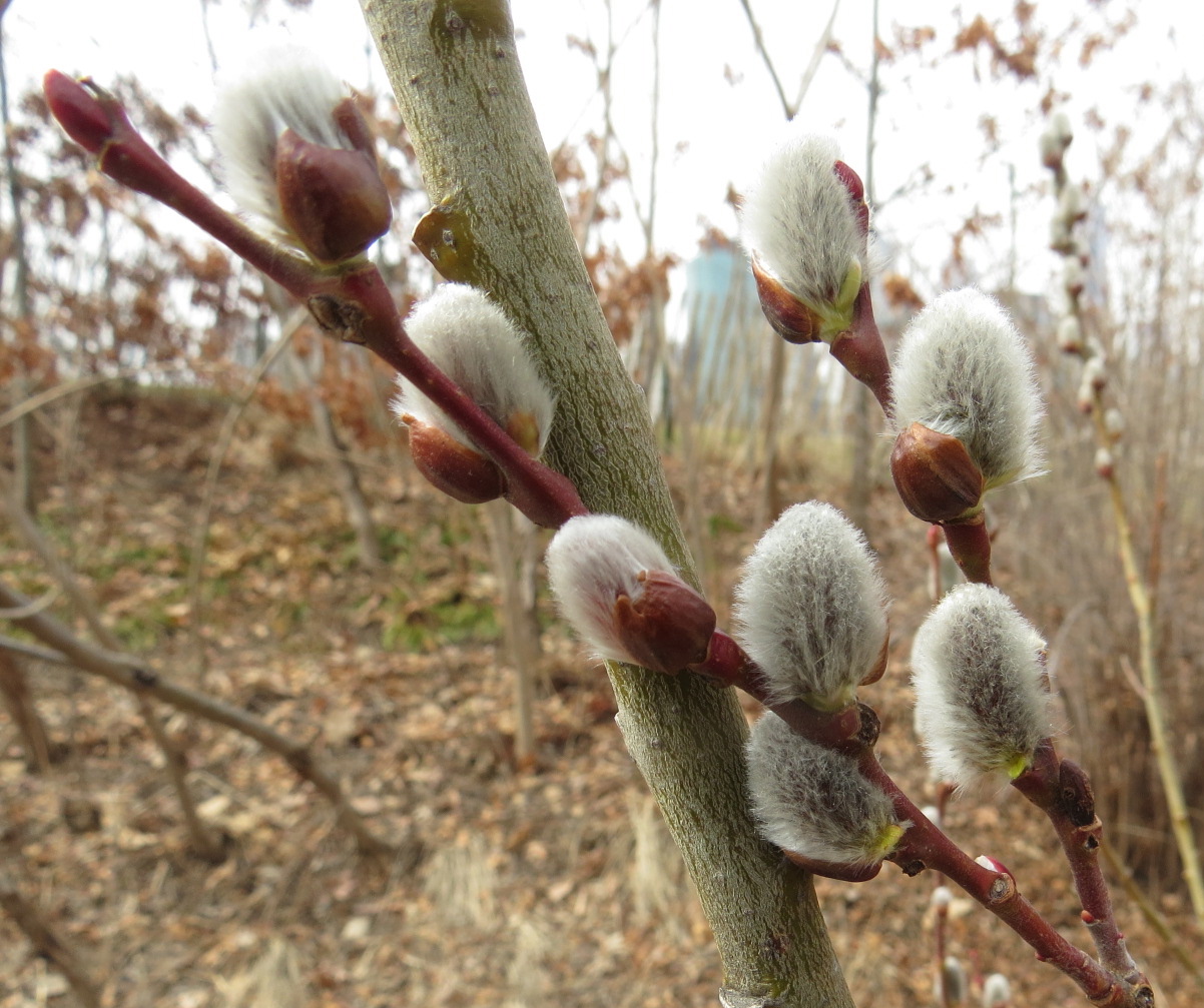 And blooms! Pussy Willow (Salix discolor), that early bud that…gets the worm of spring.
