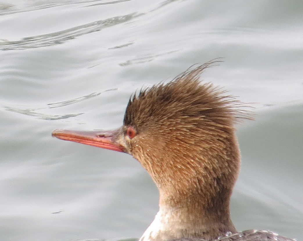 Unexpectedly, a Red-necked Grebe (Podiceps grisegena). I last ran into one in February. The red of the neck, breeding plumage, looks like it is just starting to come in. The bird was spending more time underwater than afloat.