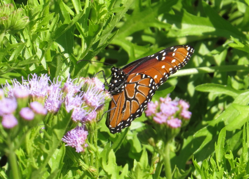 and one of the other milkweed butterflies, a Queen (Danaus gilippus). Actually, we saw a lot of these, a magical realist amount of them (pace, Gabo!) flying about the milkweed in bloom.