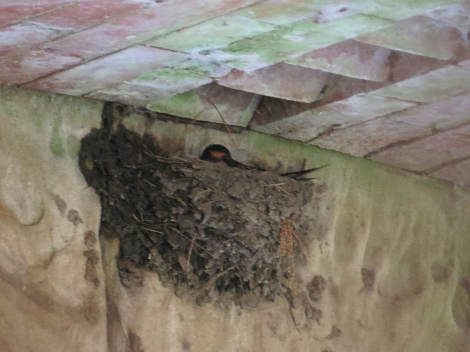 Barn Swallow (Hirundo rustica). This nest is under the same bridge as a nest last year, which is mostly still extant, but no longer right above all the people passing through.
