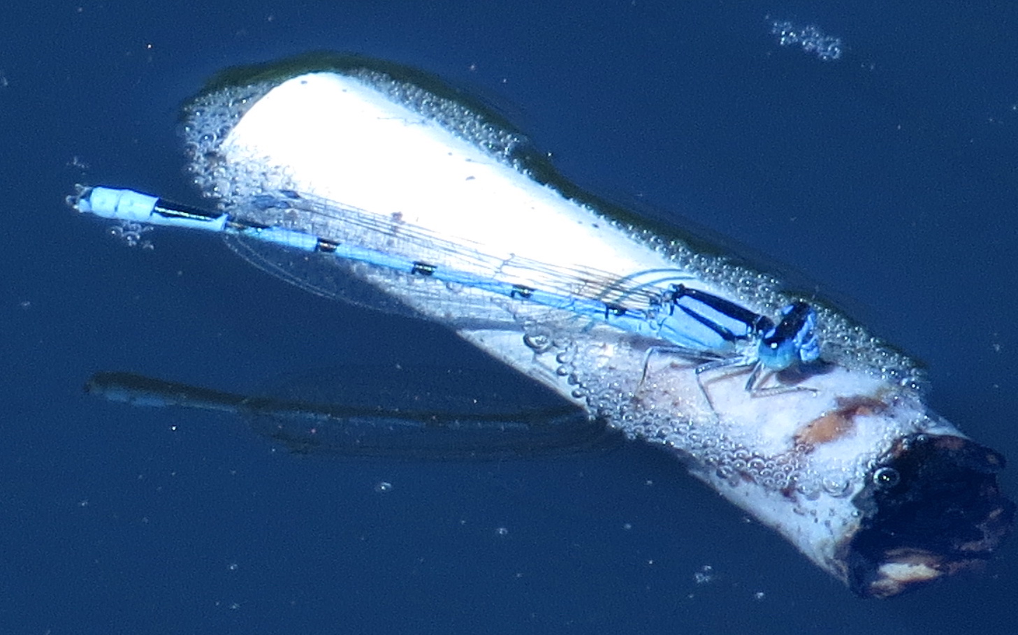 I wish there was a special place in hell for the people who just toss their butts any- and everywhere (take a look down street gratings some day). This Familiar Bluet (Enallagama civile) male seems to be less censorious.