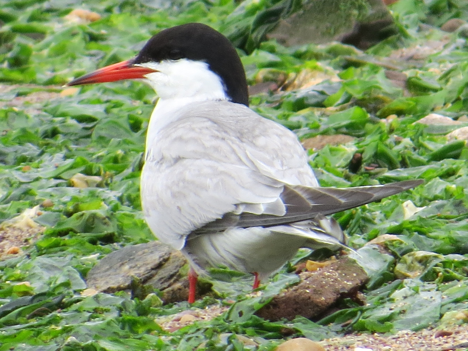 A Common Tern (Sterna hirundo) was raising vocal hell. Then it started to fly straight at me, arrow-like. I instinctively flinched as it passed over head. No fool I. The bird spun around, and returned for another strafing. I’ve been here before. This kind of dive-bombing is classic nest protection strategy for terns; that little black head and red bill coming at you means business. The business is simple enough: they want you to get away from their eggs or young. The Commons’ cousins the Arctic Terns (Sterna paradisaea) will buzz even closer, and sometimes actually whack you in the head; they will also shit on you in a coup de grâce we probably shouldn’t take for editorializing, or should we? It is best to wear your backpack on your head when you’re near an Arctic Tern breeding colony, as in, say, Iceland, where swarms of them are like big angry bees overhead.