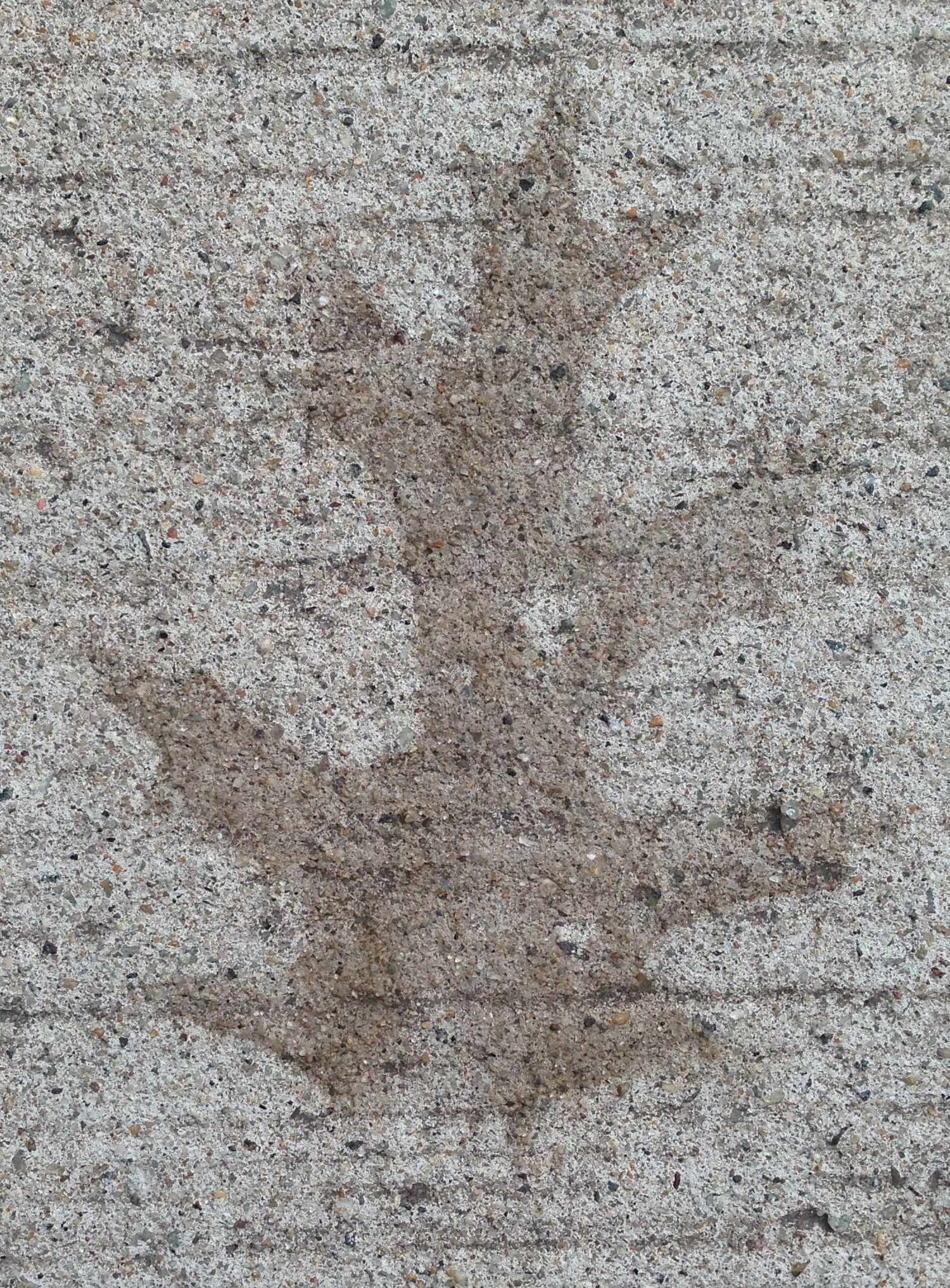 Searching to find out why leaves makes these stains on concrete, I find a lot of webpages dedicated to getting rid of them (bleach, blech!). I love the things! And find them deeply satisfying. In a cursory search, I didn’t get much further than the organic pigments in the leaf become embedded in the concrete’s micropores. Put another way, you can pave paradise, but paradise won’t let you forget it.
