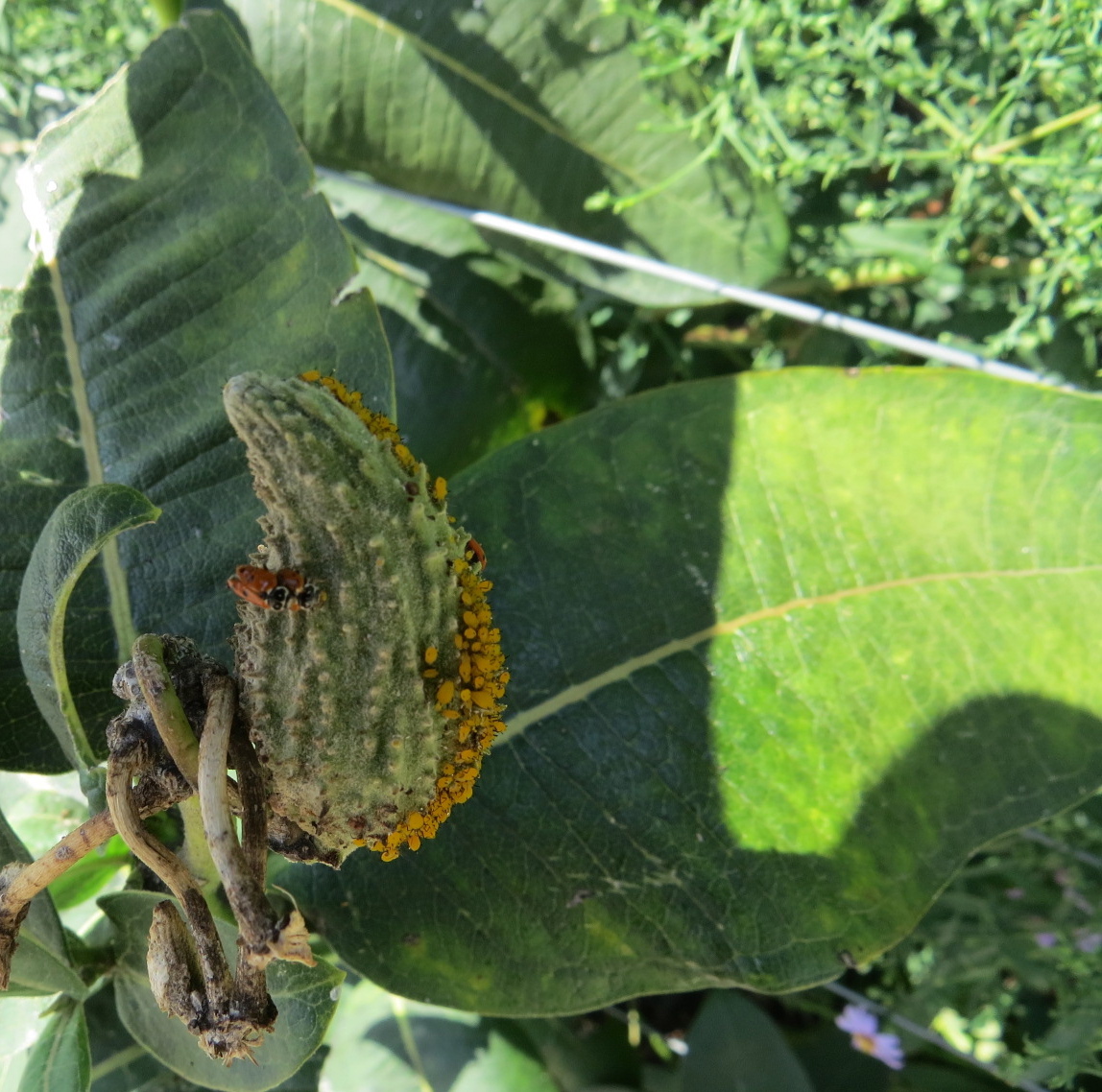 Another Common, with Milkweed aphids (Aphis nerii) and Variegated Ladybugs (Hippodamia variegata).