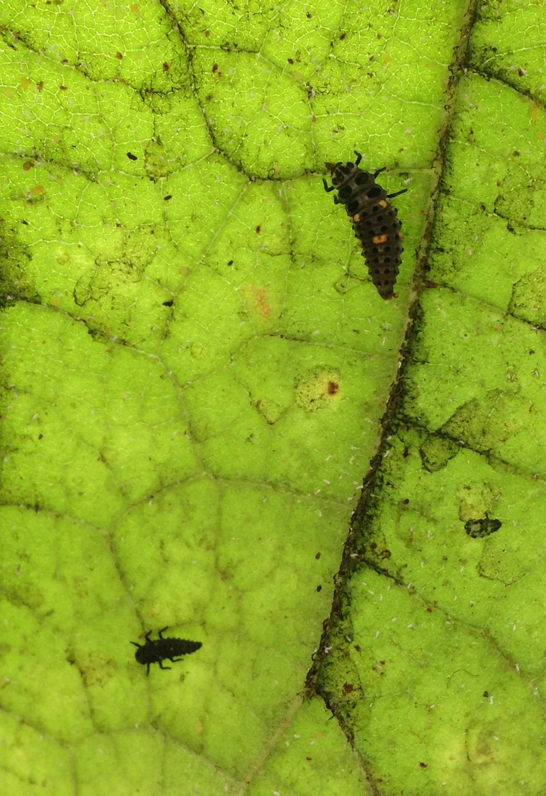 These 2-spotted ladybug larvae were still active on Thursday. Time to pupate, kids!