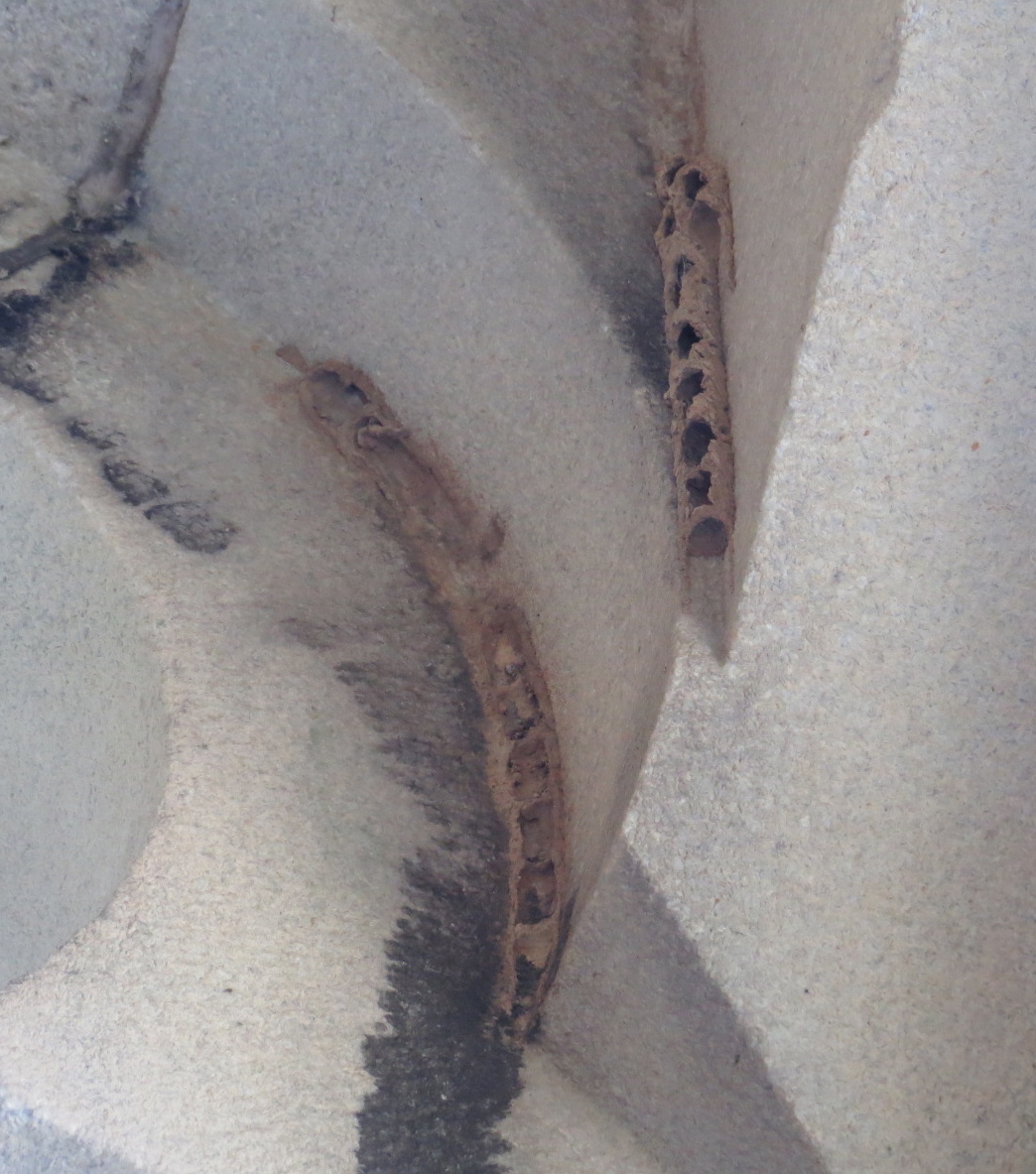 I like the way one of these “organ pipe” mud-dauber-wasp nests follows the arch here.