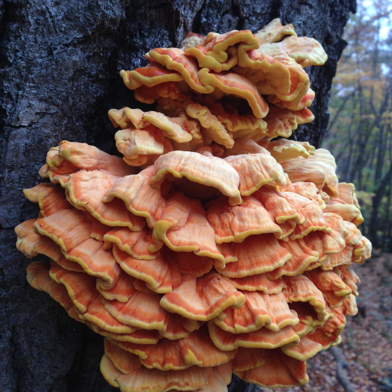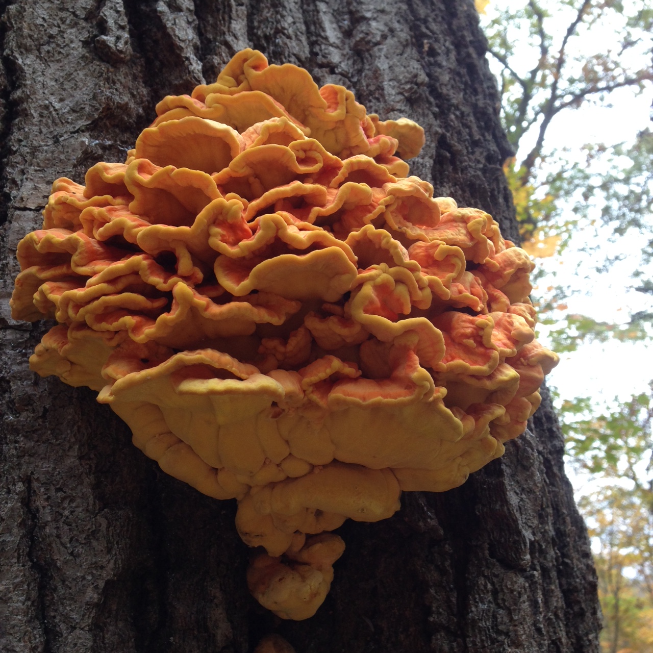 This Chicken-of-the-Woods, with its cascade of yellow and orange petticoats, wouldn’t have been noticed otherwise.