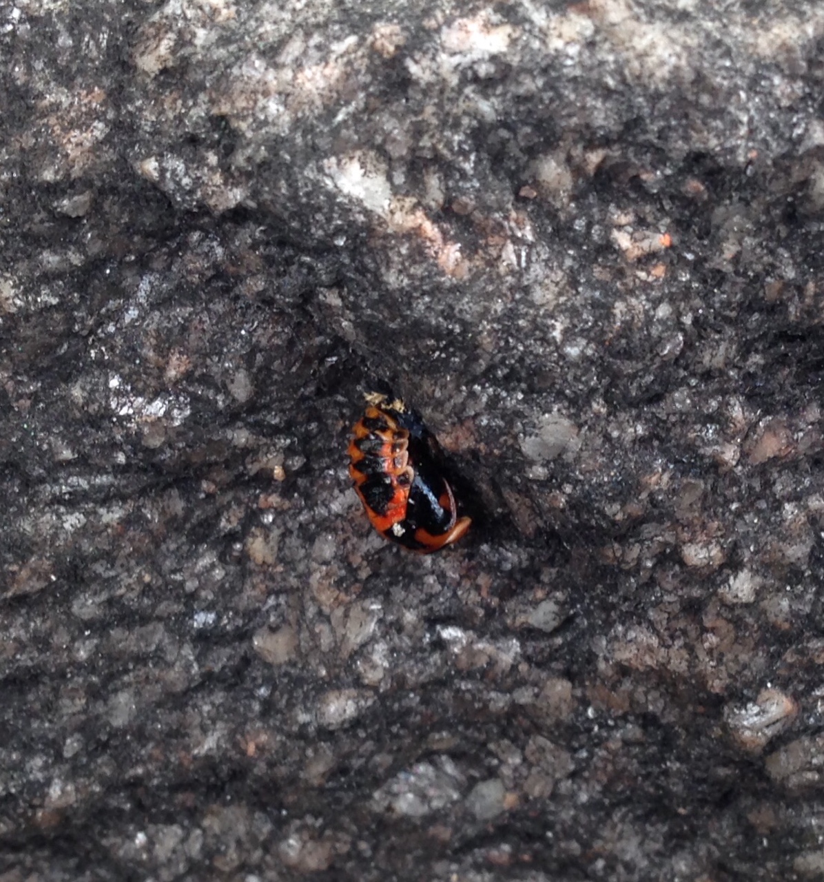 This is some kind of Lacewing larva. It was found predating under the Catalpa leaves, where the ladybugs are still to be found, too, deep into October.