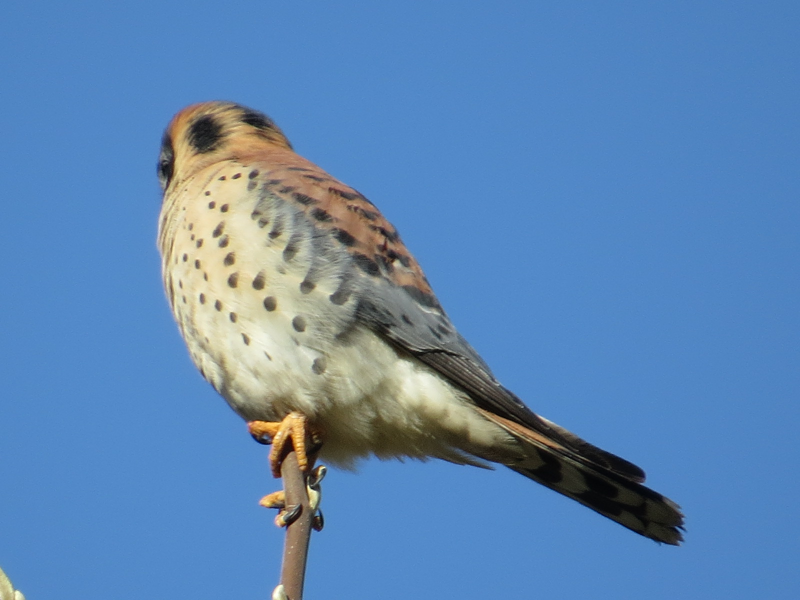 A week after spotting an American Kestrel male perching in Green-Wood I found another not so very far away. Or is this the very same bird? Mayhaps: they don’t have huge territories