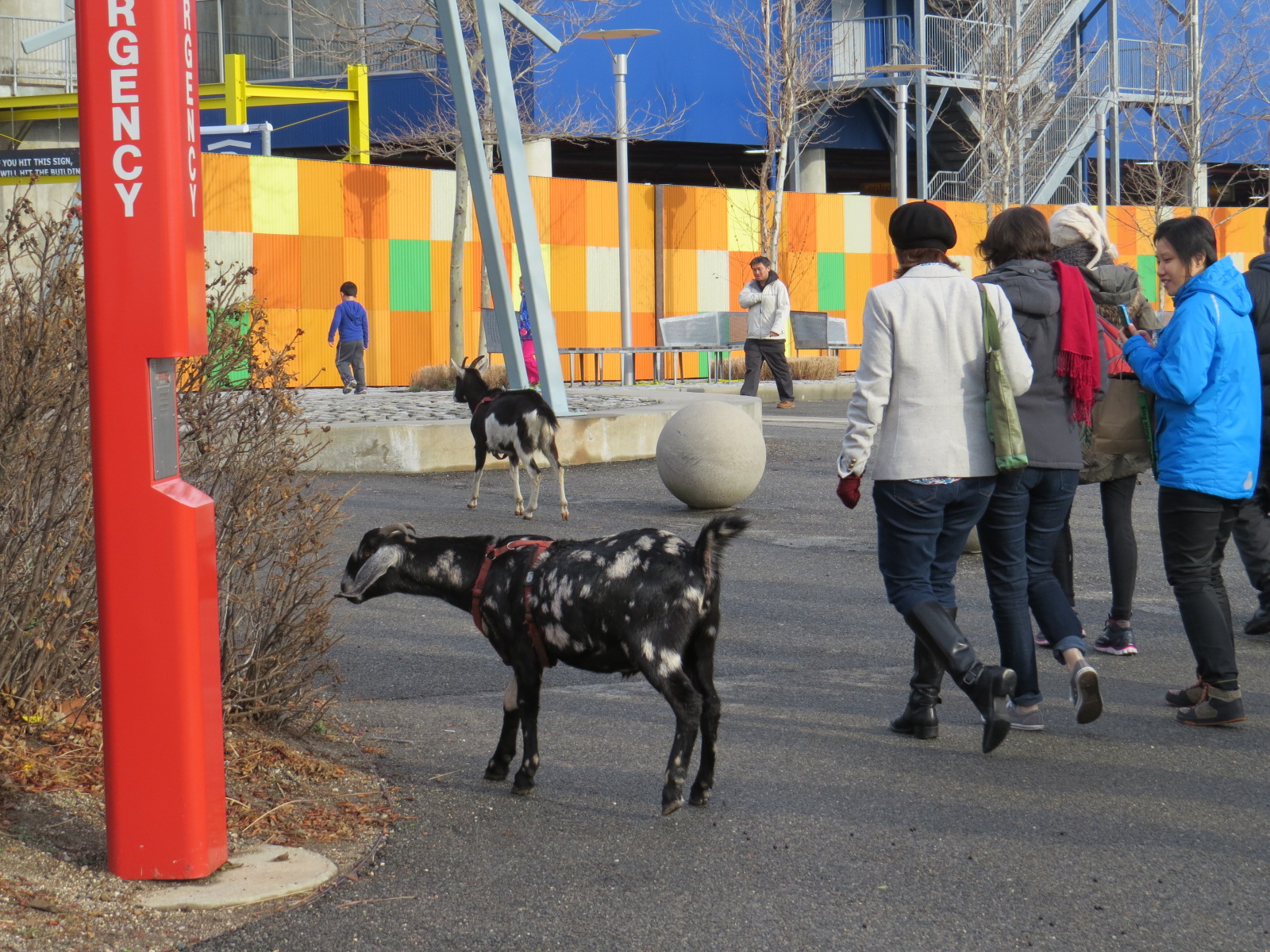 The goats were out again this past Saturday morning, nibbling on rose hips in Erie Basin park.