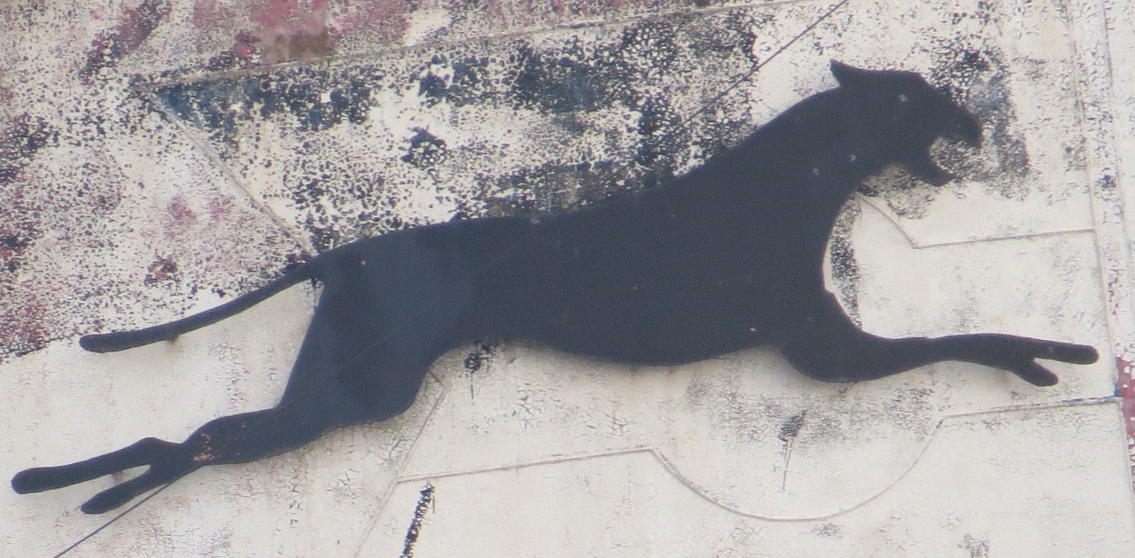 The design on the funnel of the Loujaine, an old freighter now used for storage.