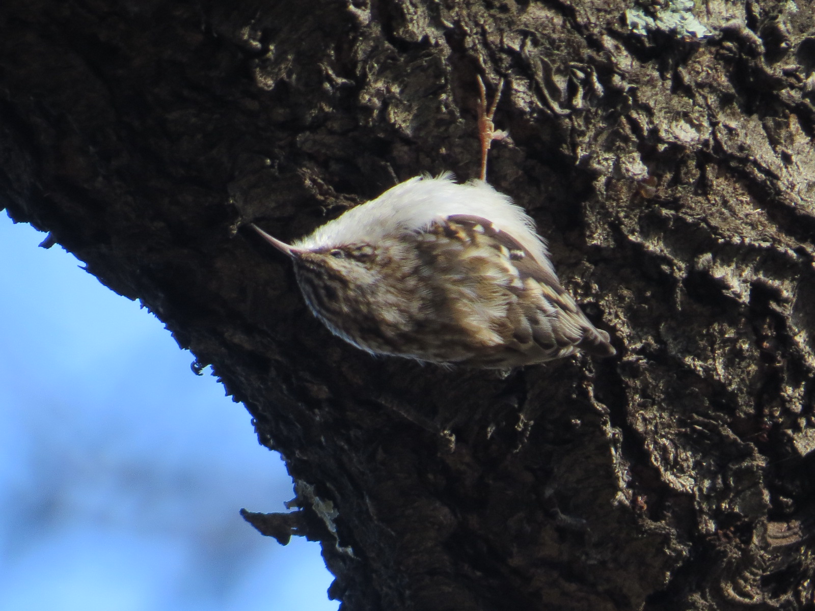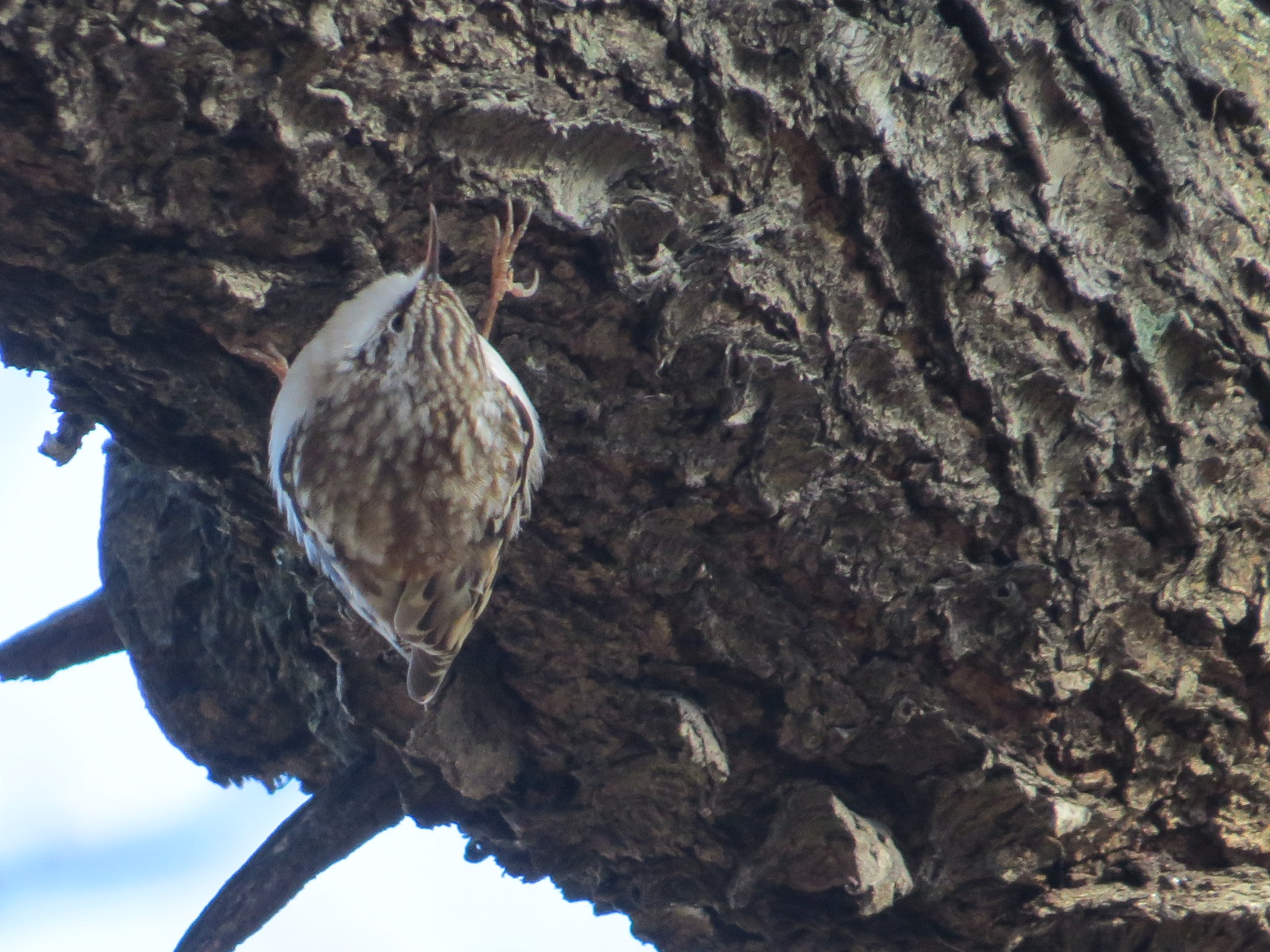 The bird will often fly to the bottom of a tree and work its way up, then down again to another tree and so on. They need 4-10 kilocalories (which is a “calorie” to the diet-watcher; by a curious editorial fiat somewhere along the line, we lost all those kilos…) a day. Their plumage is cryptic and bark-like, and they often nest behind loose flaps of bark. Here on the east coast, they breed from Newfoundland to Virginia, but there are no recent records of nesting in Brooklyn itself. They do find woods further west on the long island conducive to nesting, though.