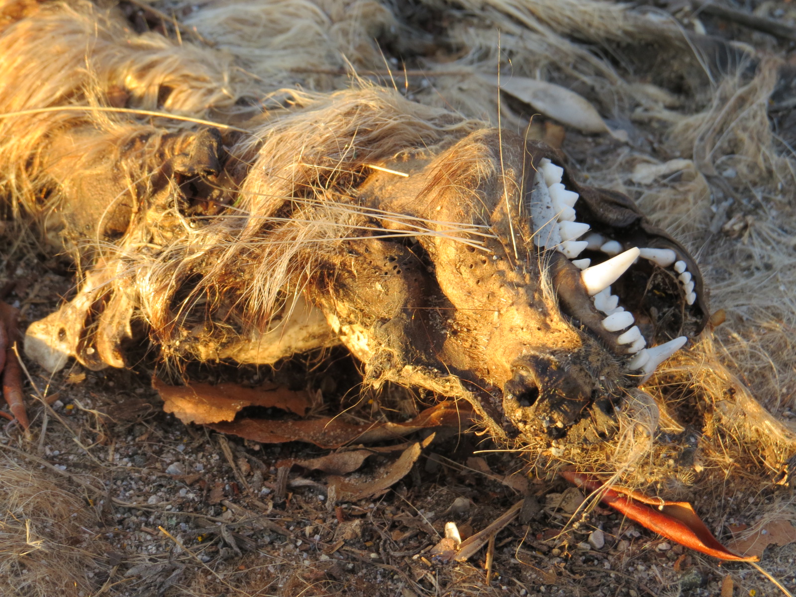 I come upon similar vignettes in my woods, mostly armadillos now. But an opossum got stuck in the overflow drain in my dam and died of starvation there, quickly decaying. All that is left now are its bones.