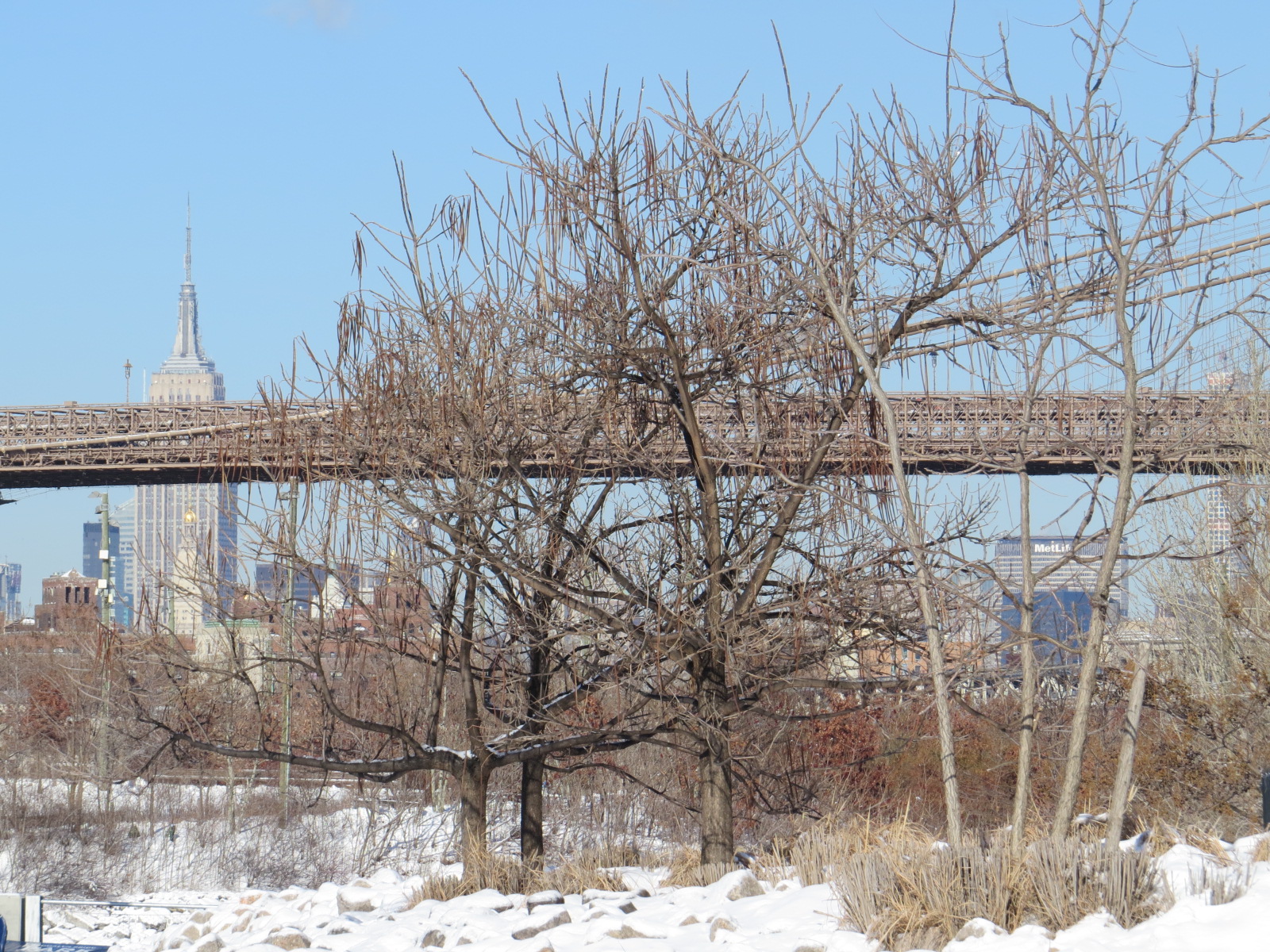 The giant old Eastern Cottonwood (Populus deltoides) between the two bridges.