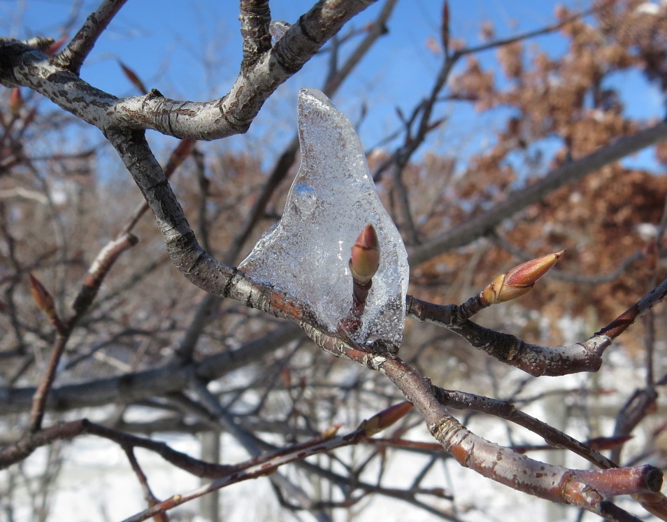 A trio of Catalpa trees, prime Two-Spotted Ladybug habitat.The Kentucky Coffee trees on the right, however, don’t inspire the aphids the ladybugs eat.