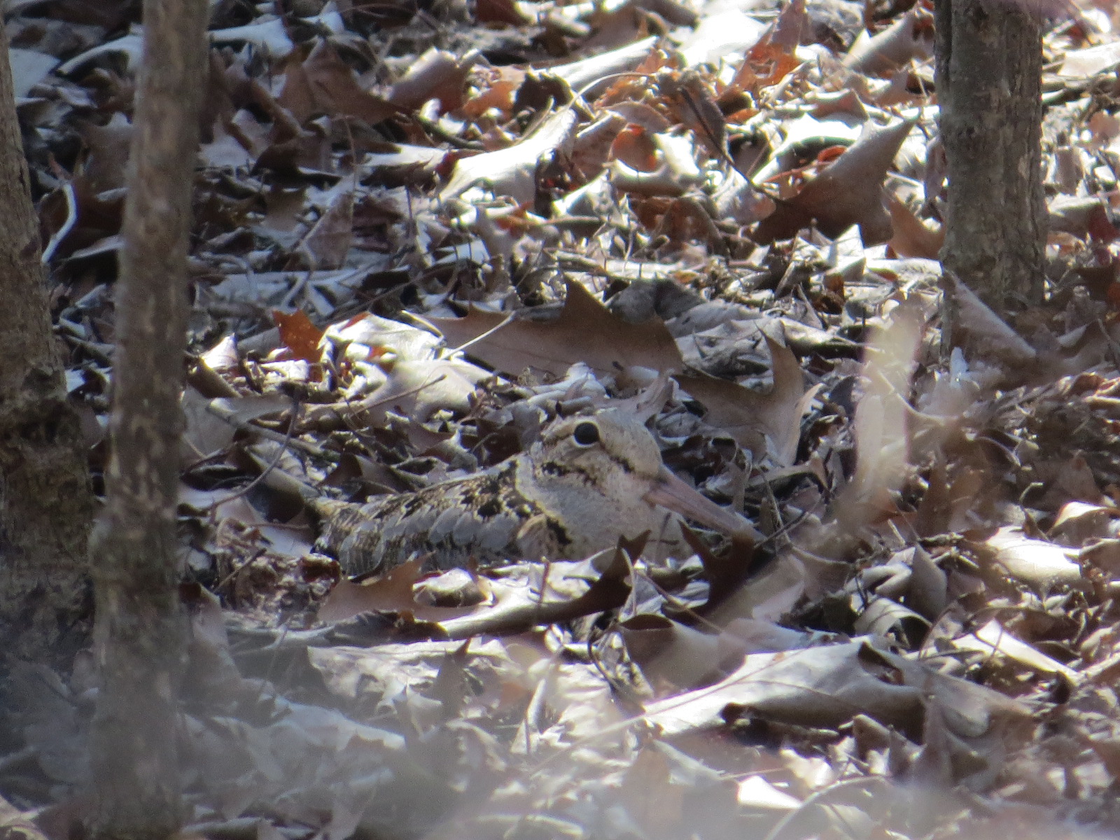 This is American Woodcock (Scolopax minor) country. Actually, this time of year, practically anywhere is American Woodcock country: backyards, bars, porches, Park Avenue medians, DUMBO parking garages. Yes, I’ve heard cases of them appearing in all these places. I’ve written a poem in which I refer to them bombarding us during the migration seasons; I’d link to the poem if only the swines would publish it already.