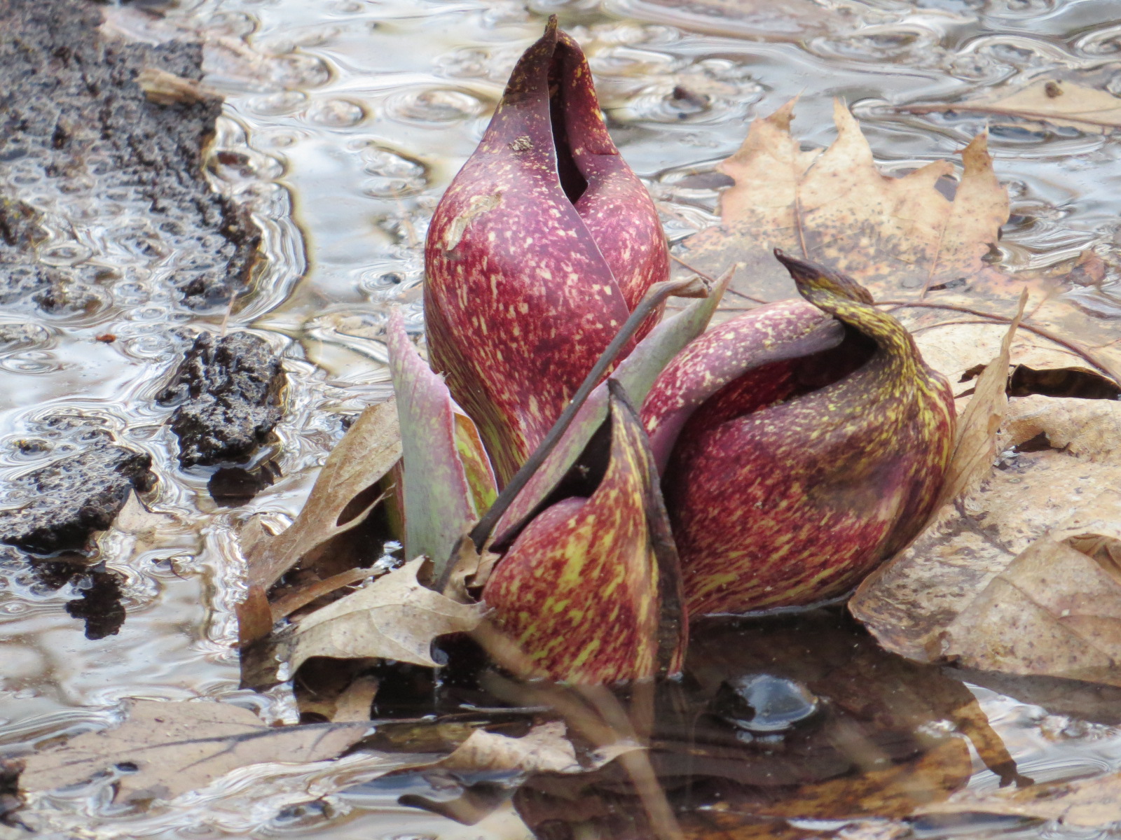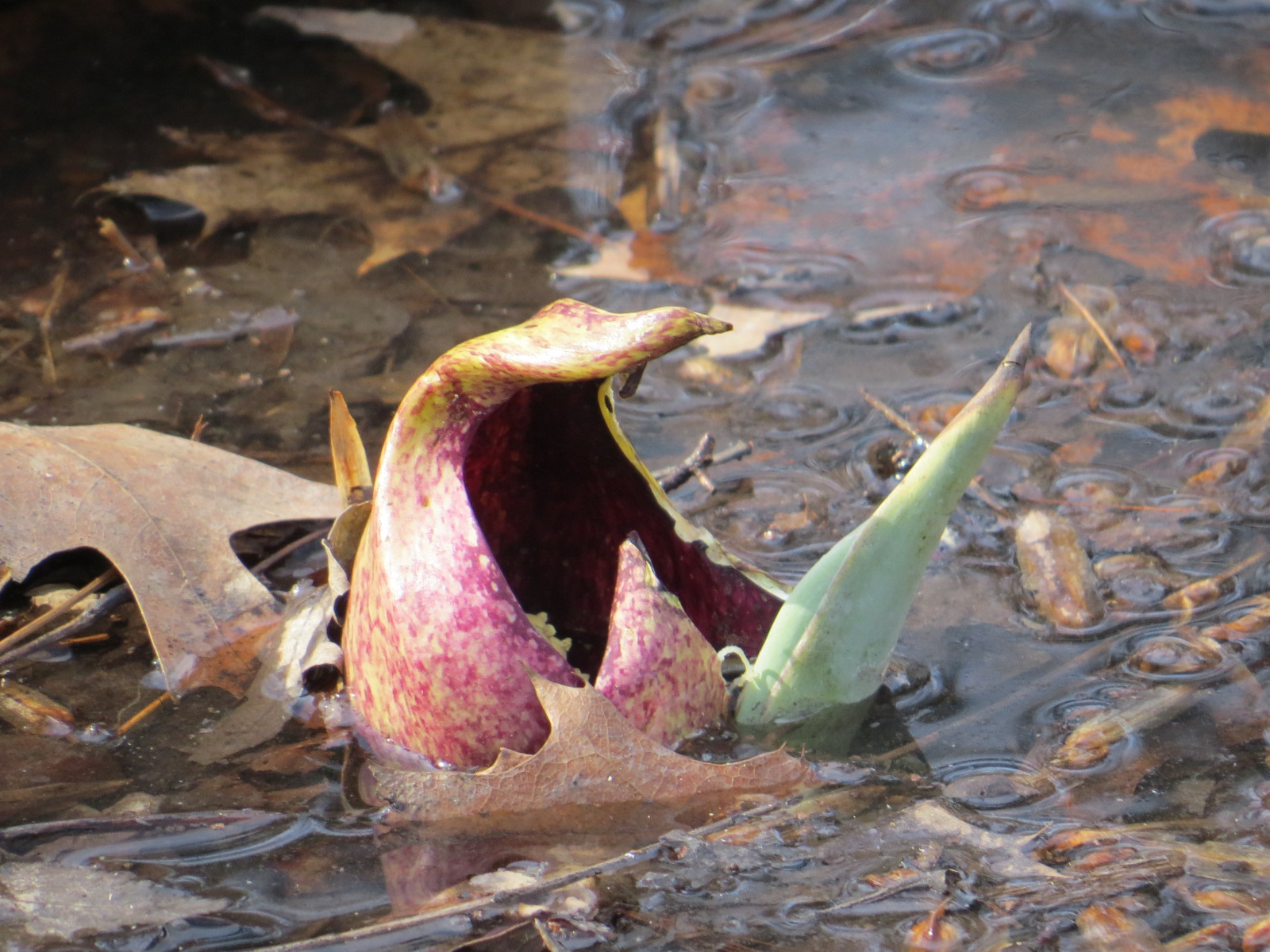 […] I missed the emergence of Skunk Cabbage this year. Here’s some of the mature, cabbagy leaves as they look now. The time-travelling internet, however, can take us back to a previous year’s sprouting. […]
