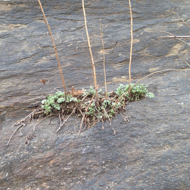 And in a little hollow, a patch of Mugwort (Artemisia)! The stuff grows anywhere. Its roots, like other plants punching into rock, will assist in the weathering away of this rock face over time.