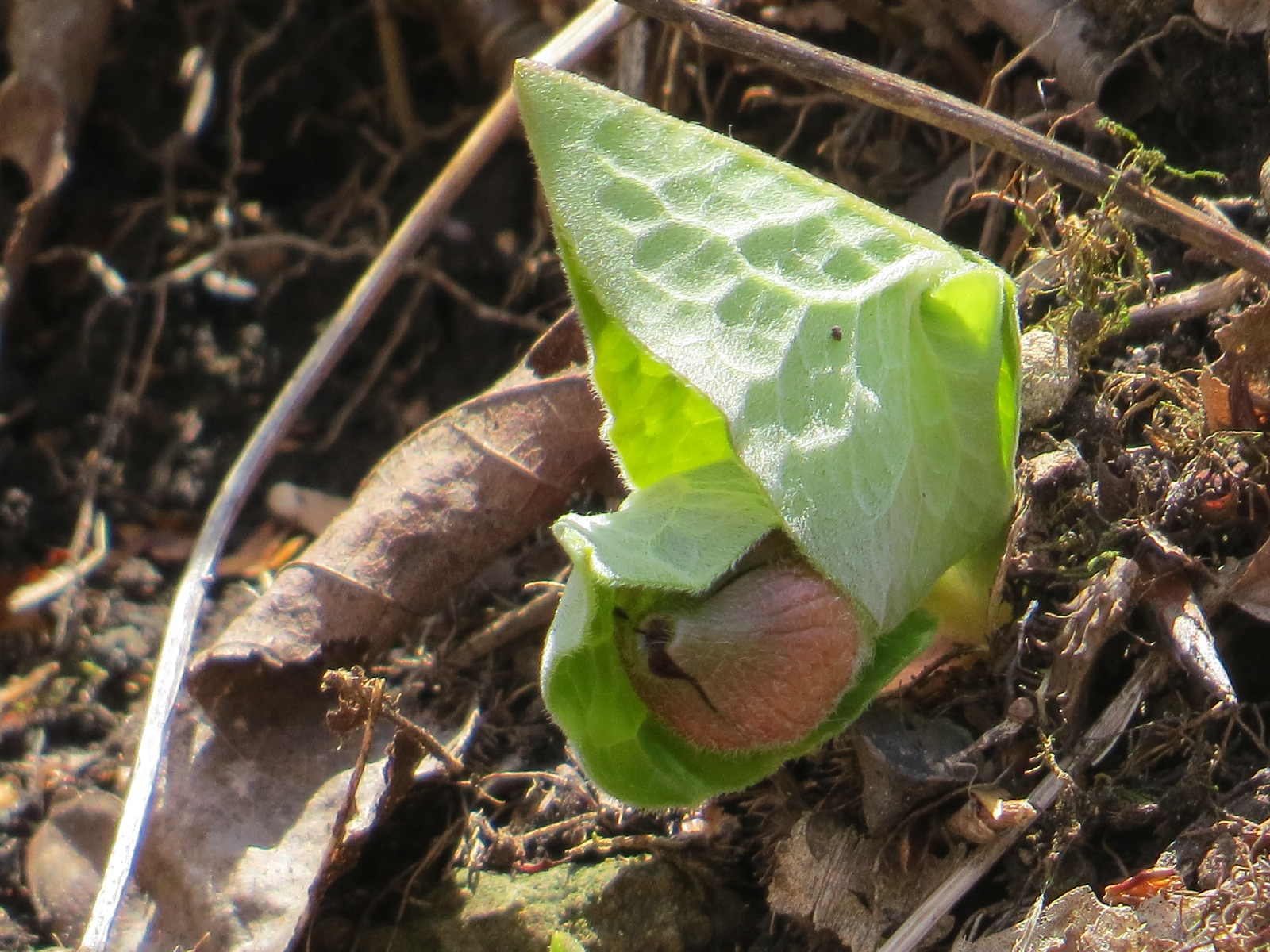 From the Black Rock Forest, here’s an emerging Wild Ginger (Asarum canadense) flower.