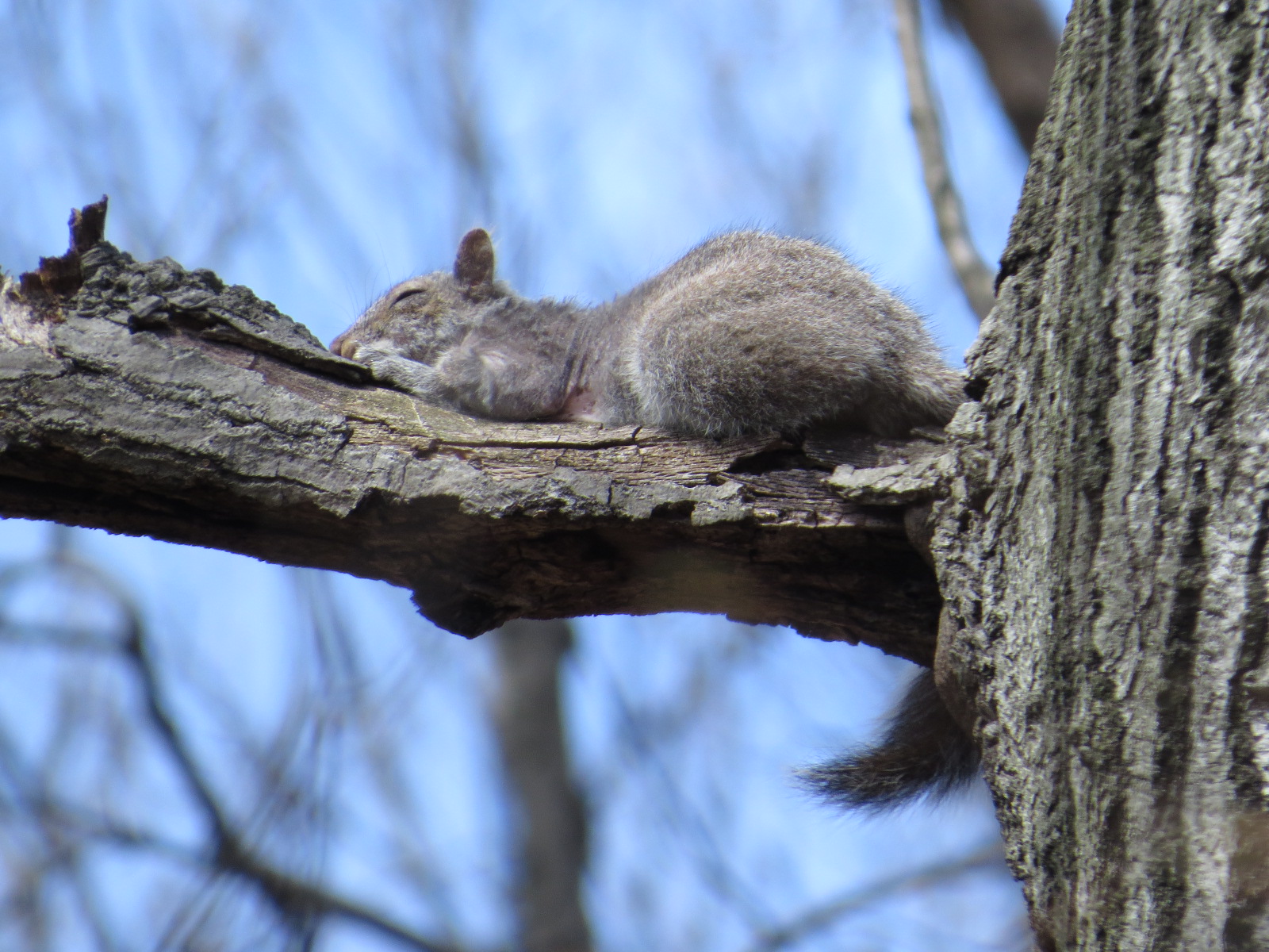 Squirrel eating a… wait a minute, that’s a green-dyed Easter egg, more than a week after Easter!