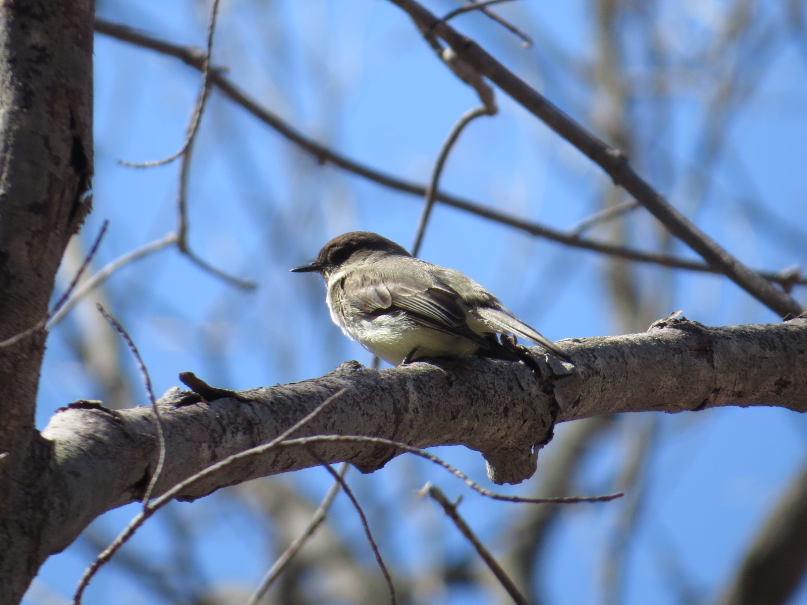 Eastern Phoebe (Sayornis phoebe) paints the sky blue.
