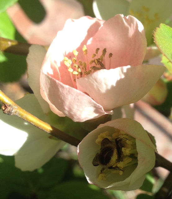 Ornamental quince with pollinator butt.