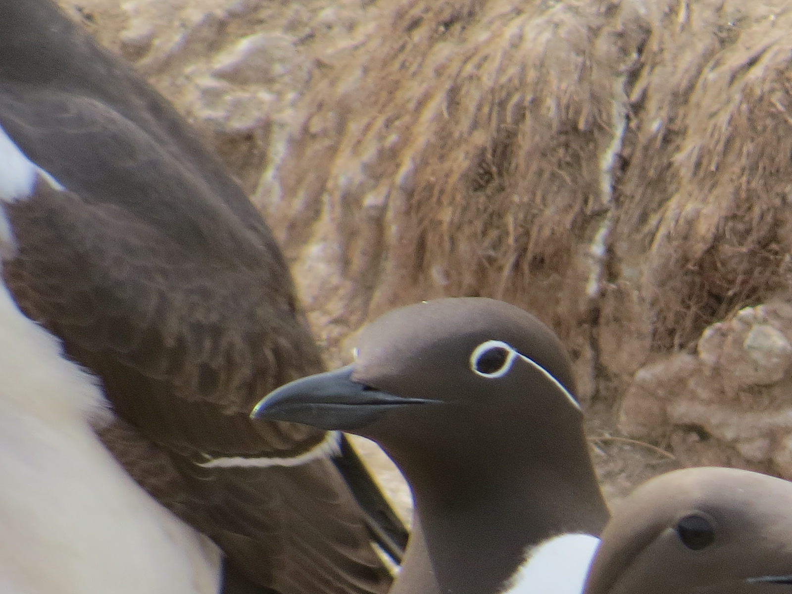 A small percentage of Murres are of the brindled or ringed variety, with white around the eye and flaring back in a down-curving line. This percentage increases as you get further north.