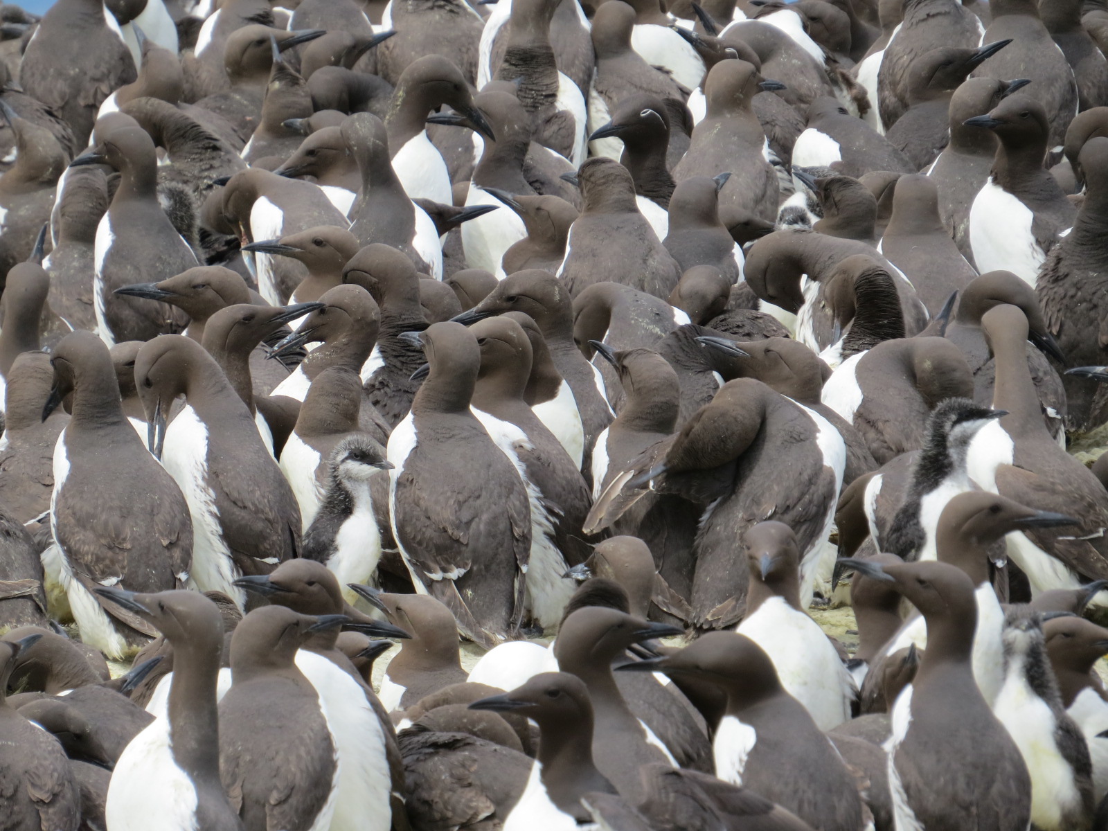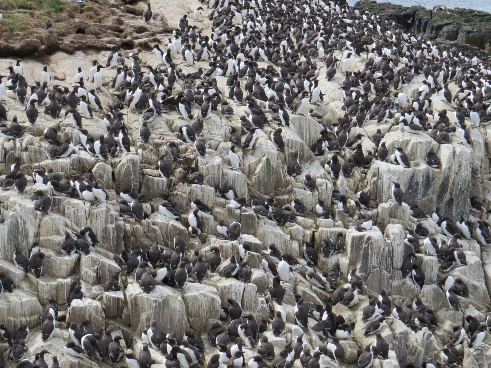 Twelve thousand breeding pairs of Common Murres, Uria aalge, known as Guillemots in the UK, nest on Staple Island.