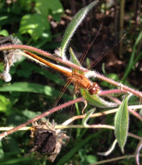 When mature, this small dragonfly will be a beautiful shade of red, and a representative of one of the few dragonfly species to be seen locally into October. The yellow-legs will stay this color: an alternate common name is Yellow-legged Meadowhawk.