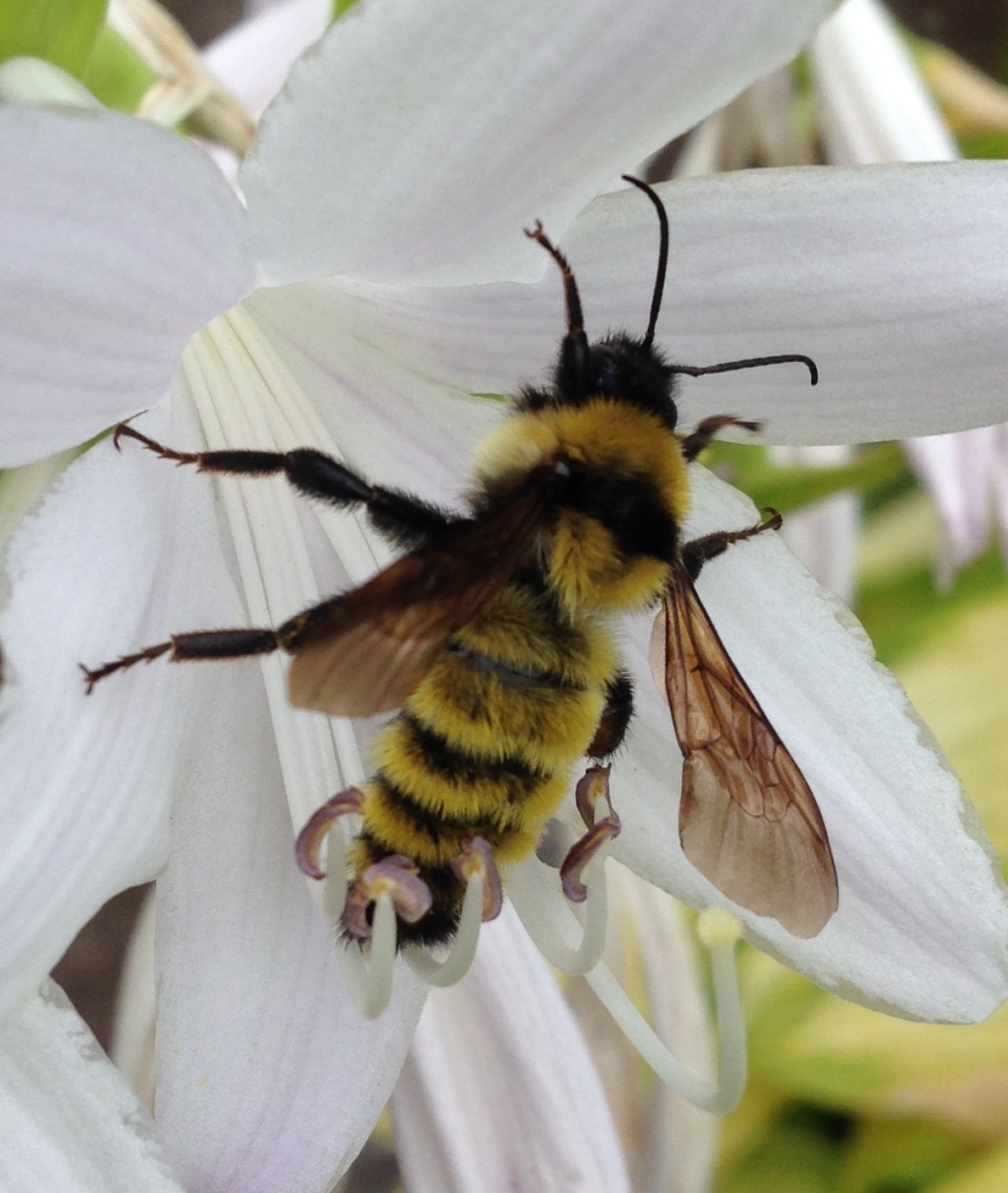 This large, handsome bumble bee was thoroughly probing the Hostas in Green-Wood.