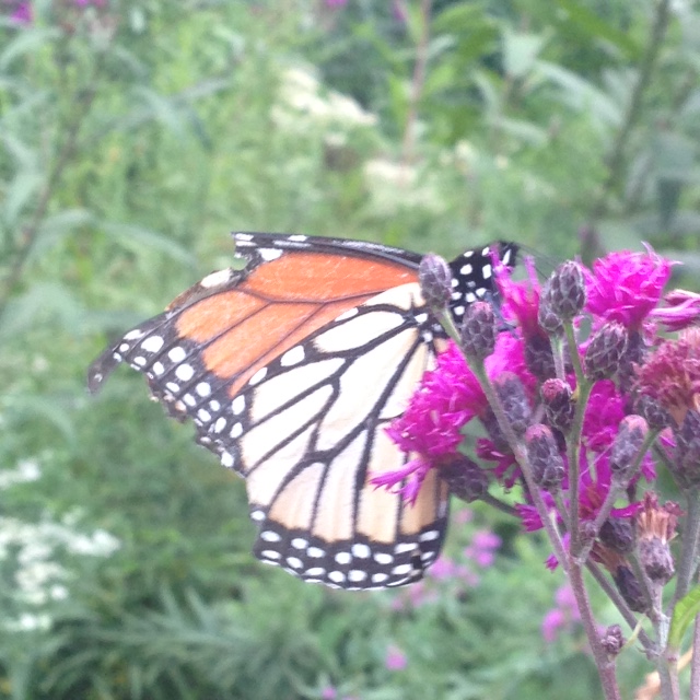 This Monarch was doing pretty well, considering the chunk taken out of its wings.