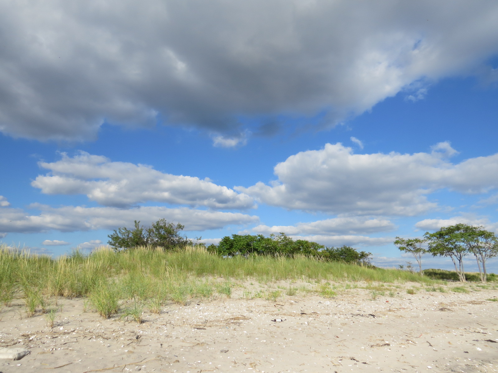 Plumb Beach is off the Belt Parkway between Sheepshead Bay and Flatbush Avenue. The Parks Dept.’s website calls it Plumb; Parks Dept. signs on site call it Plum; it is supposed to be named after Beach Plums (Prunus maritima). It has a unexpected history, although perhaps not for Brooklyn’s wild edges, capped more recently by tragedy. In the supposedly more savage natural world, it is one of the premier places for Horseshoe Crabs in the spring. It was surprisingly quiet on a recent late afternoon. But that may have been explained by an enormous NYS Envirnonmental Police vehicle and armored-vest (!) wearing rangers on patrol.