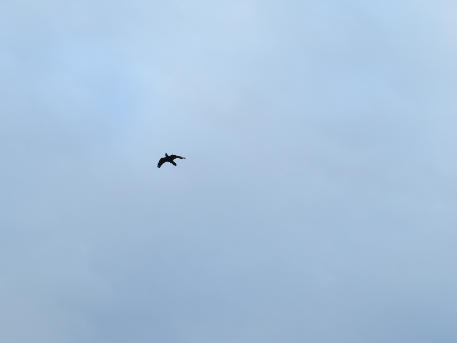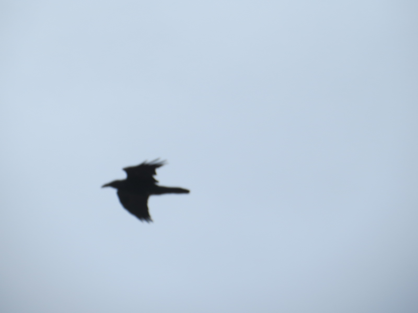 A pair of Ravens (Corvus corax) sailed on the stiff breeze along the shore of Bush Terminal the other day. This is where I and others have seen and heard them off and on since New Year’s Day. They have an almost floppy wing action, exacerbated by their long finger-like primary feathers. Several hours later on a return visit, a single Raven was seen and heard in the distance.