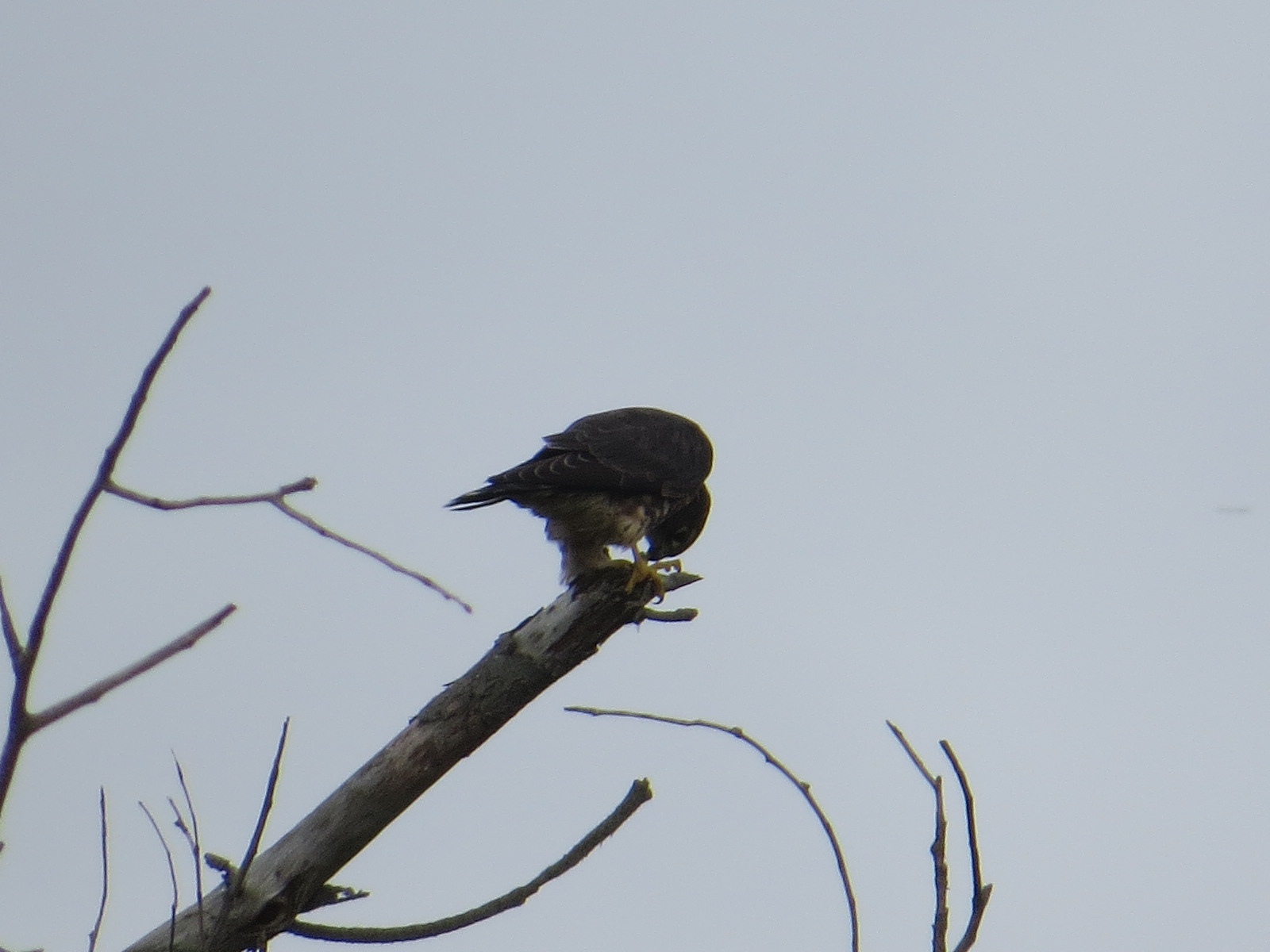 A plump silhouette on a dead pine. The first rule of birding is to always look at the anomalies. And hope the sun comes out!