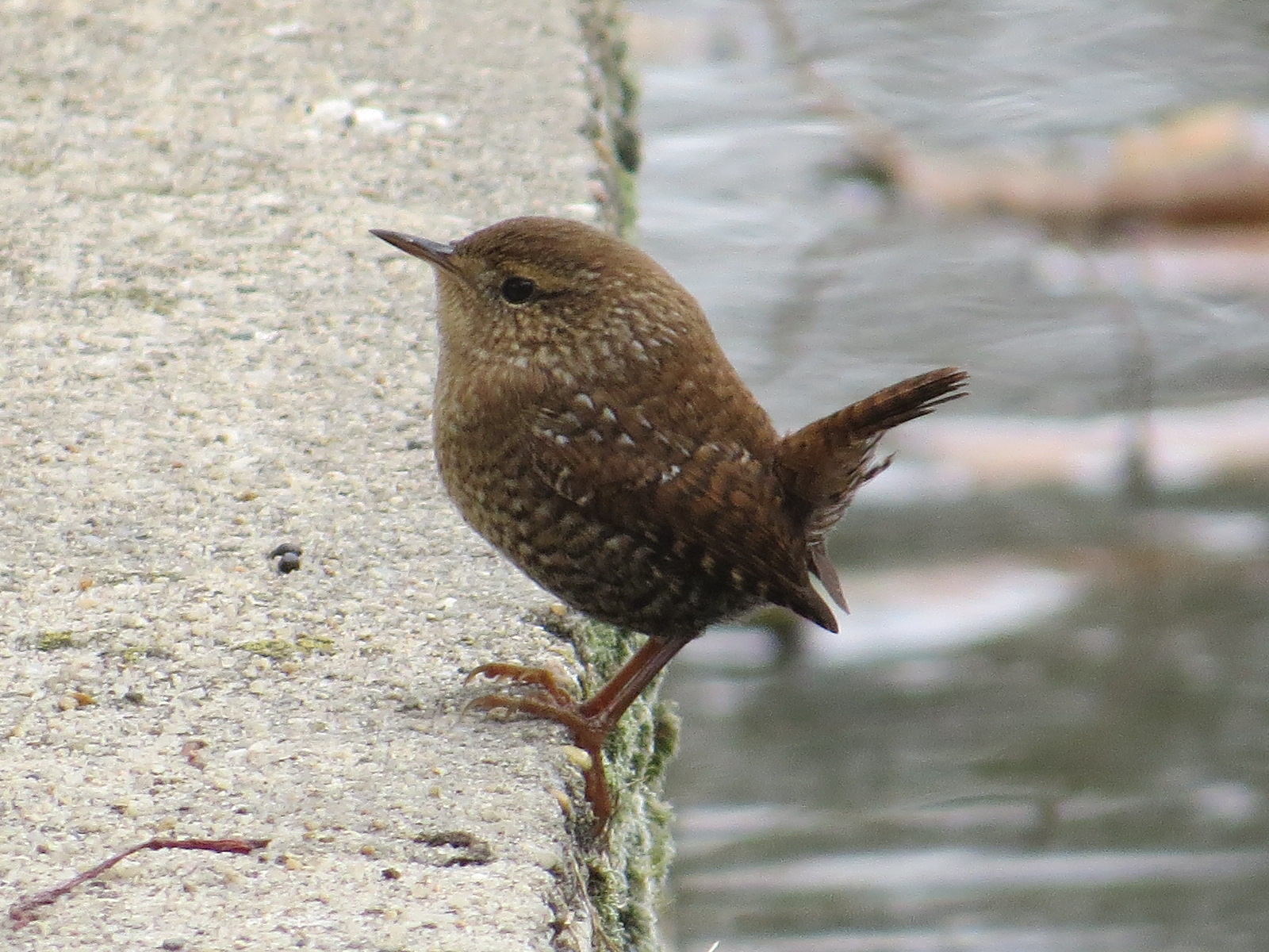 They were living up to their genus name, Troglodytes, going into the nooks and crannies of this retaining wall. The bird’s small, upright tail looks unnaturally abbreviated here, but this is how they roll.