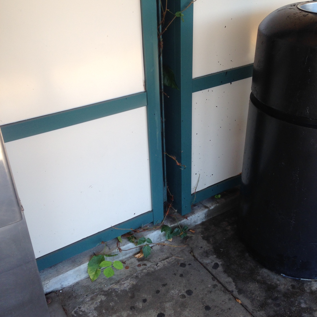 Poison Ivy (Toxicodendron radicans) creeping into a subway station, an elevated subway station: Bedford Park 4 train in the Bronx.