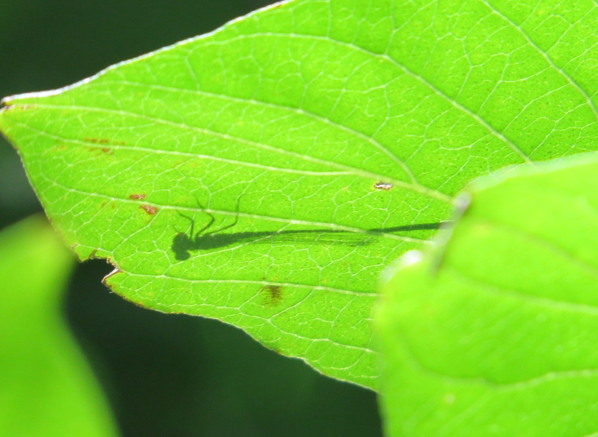 This is a Fragile Forktail (Ischnura posits), spotted recently in Prospect Park. But it has been a lousy year for damselflies. I’m seeing neither the species nor the numbers I’ve seen in the past, particularly in Green-Wood. There, the “waters” are a mess: Valley Water has had no lilies all season; the Sylvan Water is so green it hurts the eyes — I suspect it’s saturated with too much nitrogen from fertilizer run-off. As nitrogen-supercharged algae dies, it consumes the water’s oxygen in decomposition, making a hypoxic dead-zone. The cemetery, concerned with maintaining absurd lawns, also still sprays pesticides. This summer’s heat hasn’t helped. In Prospect, fish died like crazy, also probably due to the oxygen-depleted water.