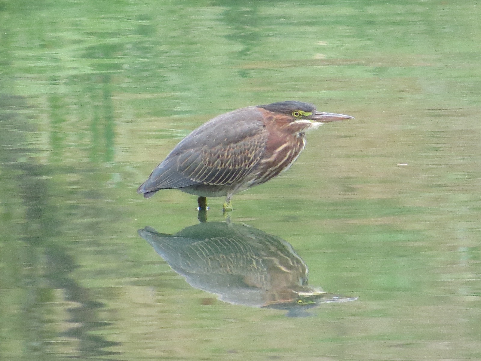 Green Heron (Butorides virescens), also at Crescent Water. I think it’s standing on something under there, because judging from some of the creatures that have emerged from there, it’s deeper than that usually.