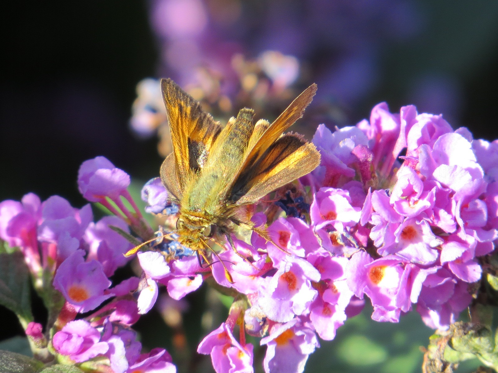 What a late, endless fall. This picture of a skipper was from last Friday, and there was at least one other of these quirky butterflies still working these amazingly productive ground-hugging buddleia.