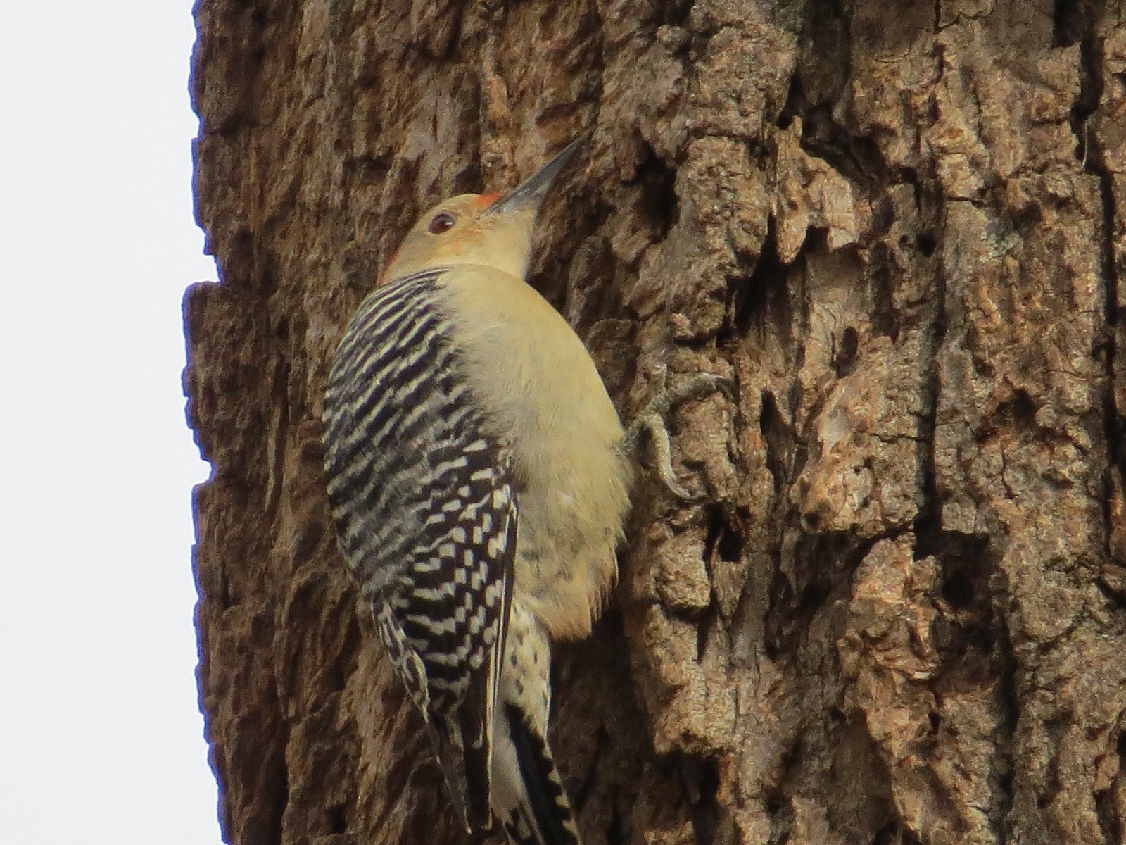 I’m seeing, and hearing, more Red-bellied Woodpeckers (Melanerpes carolinus) this winter than Downy Woodpeckers. In the Spartan woods of winter, their loud calls can be the only sound other than the wind.