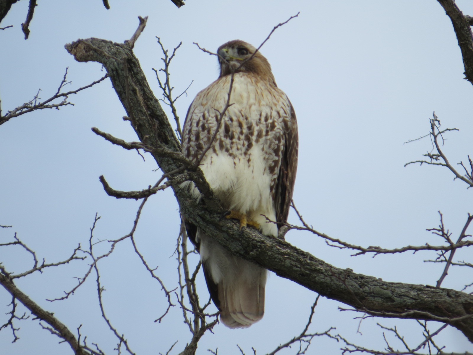 At one point, the male caught, or scavenged, a mammal and called for his mate with a sound I can’t recall hearing before. She appeared, and there was some dancing from tree branch to tree branch.A food transfer seemed to be in process, although we never saw the actual talon-off.