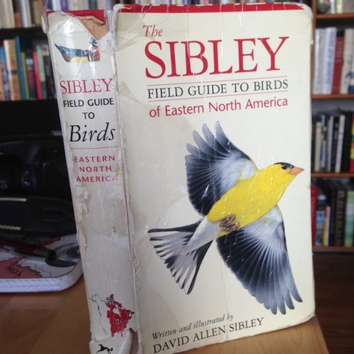 When I started to watch birds I decided to go with D.A.Sibley. Why? I don’t remember my reasoning. Anyway, here it is, my original copy, 15 years later, bashed a bit, slightly foxed (aren’t we all?) but with the signatures still holding. In general I don’t carry a book out into the field anymore — unless there’s a vehicle involved.