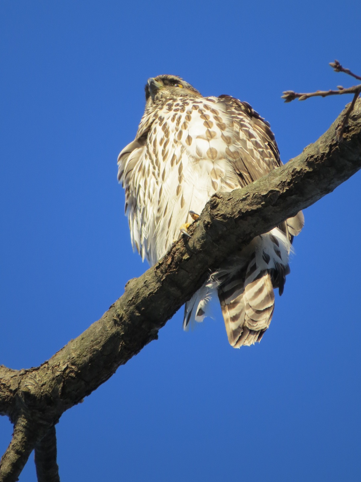 The Second Atlas of Breeding Birds (2000-05) had 130 confirmed Goshawk nests in New York state, with 170 more possible and 54 probable, a decrease from the First Atlas (1980-05). But there are no records of such for the NYC-Long Island area, which lacks the extensive tracts of forest that makes up the species’ usual habitat. They are known to be very defensive around their nests.