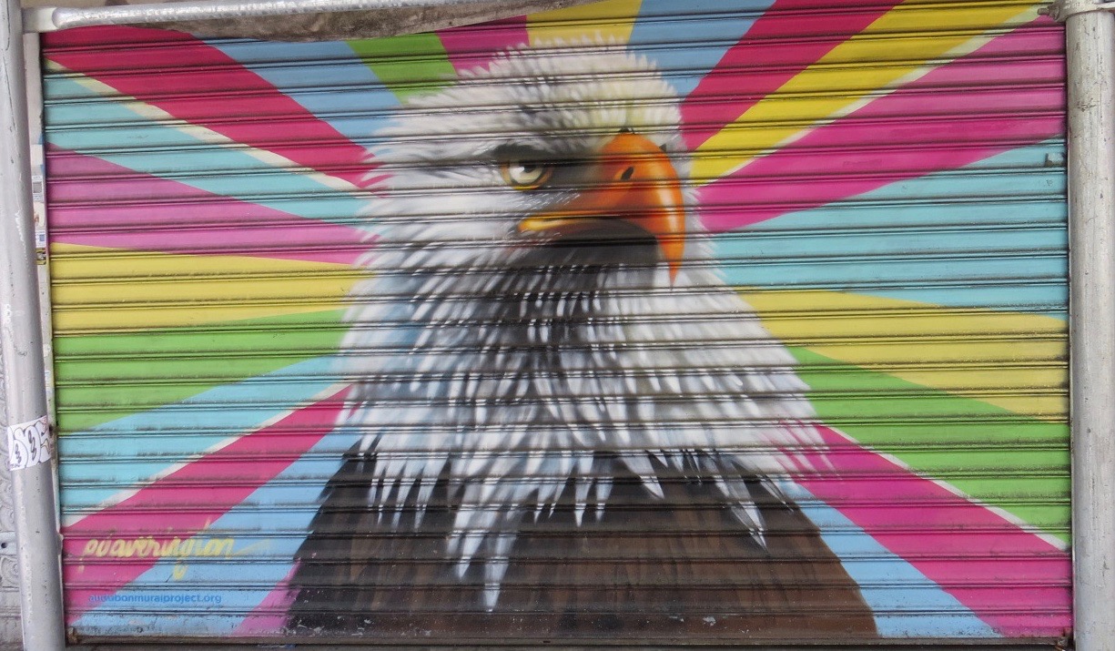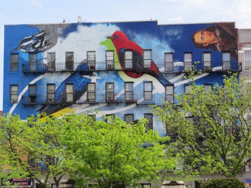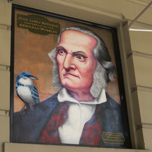 [By popular demand, here’s the short talk I gave in celebration of John James Audubon’s birthday to the Riverside Oval Association and friends last week. A good time was had by all, I think, and the cake was delicious. Photos are from the same day: I walked around looking at some the Audubon Murals in the neighborhood, a joint project of National Audubon and Gitler &_____ Gallery. There are some 80 murals up now, less than half of those planned; all of birds threatened by climate change.]