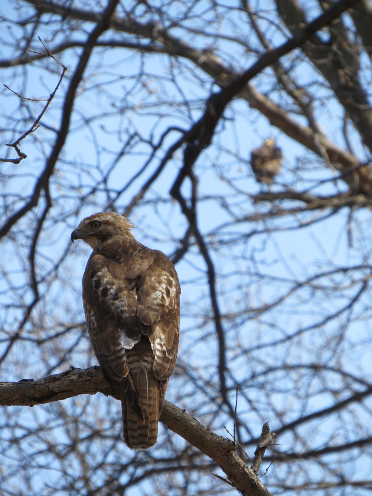 This Red-tailed Hawk remained perched as four of us walked underneath it on the path.