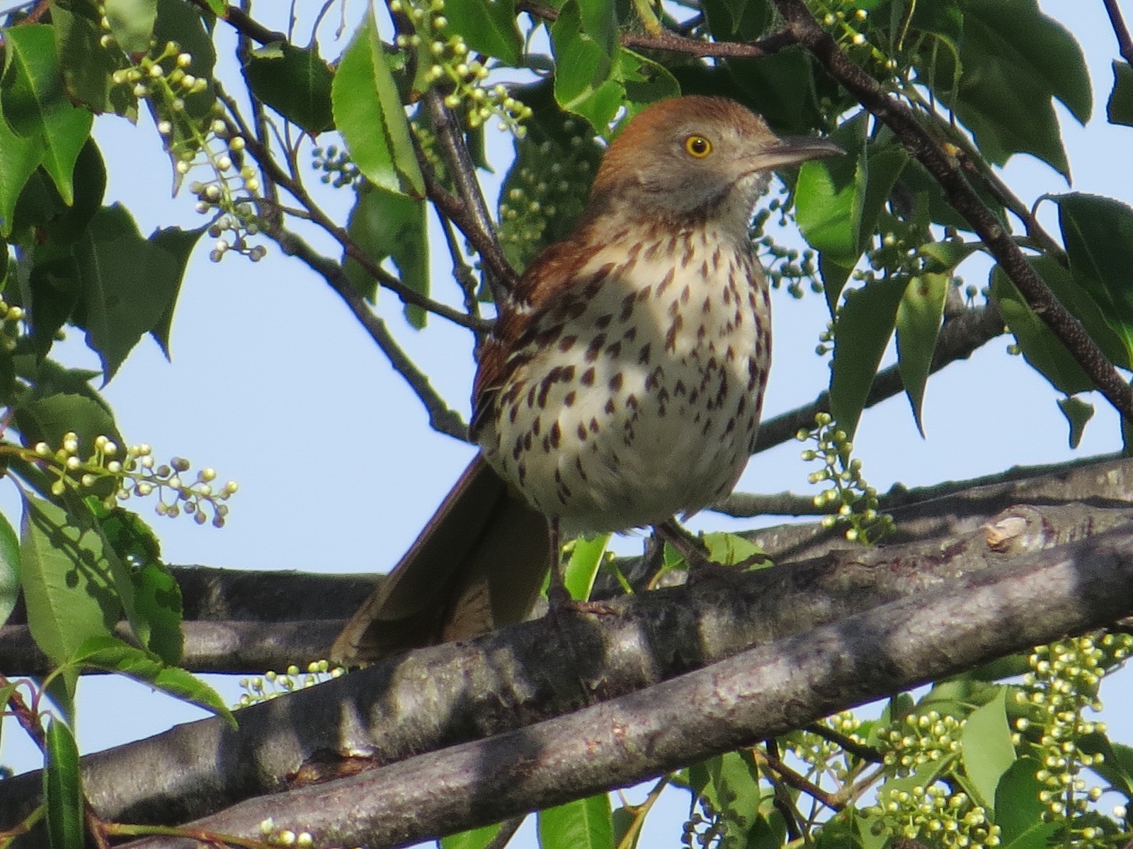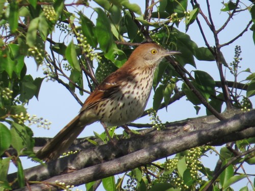 But the Brown Thrasher (Toxostoma ruff), as boldly patterned and colored as it is, is not so easily seen.