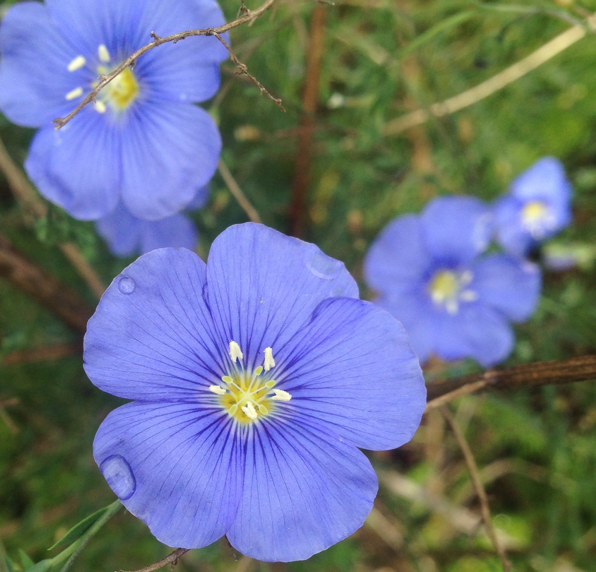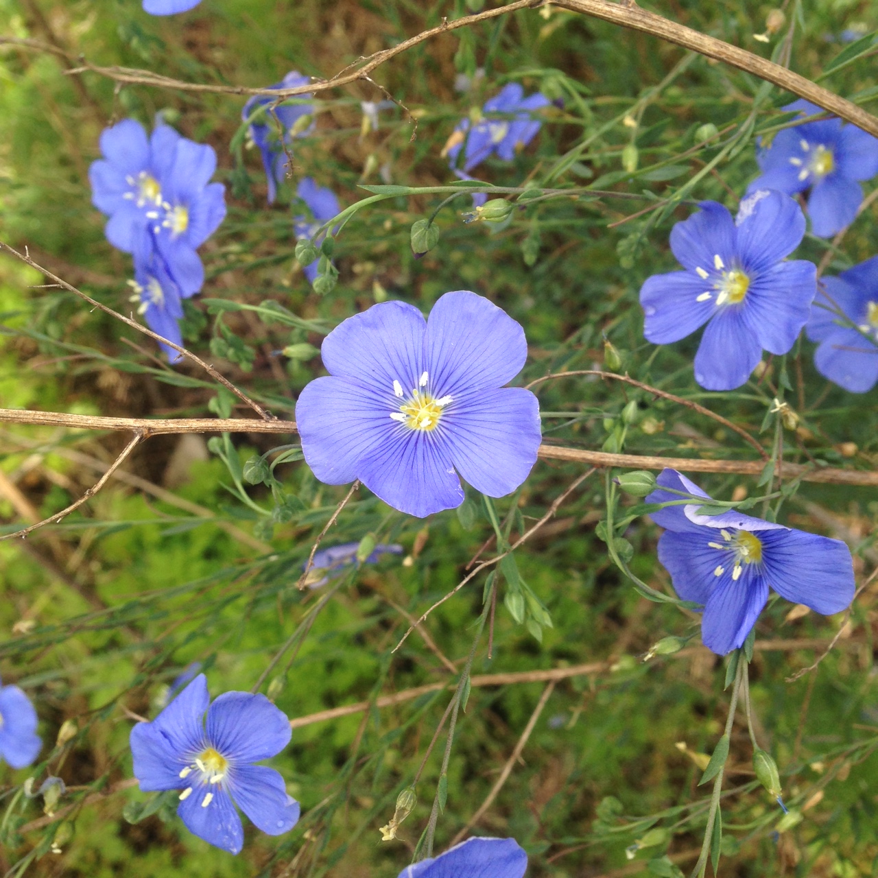 It’s definitely blue and it’s definitely flax, but is it (Wild Blue, Lewis, Prairie) Flax ( Linum lewisii, Linum perenne, Linum perenne lewisii are all synonyms) native to the other side of the Mississippi? Or is it Linum usitatissimum, native to Eurasia and the Middle East and for thousands of years cultivated as a source of fiber and seed oil.