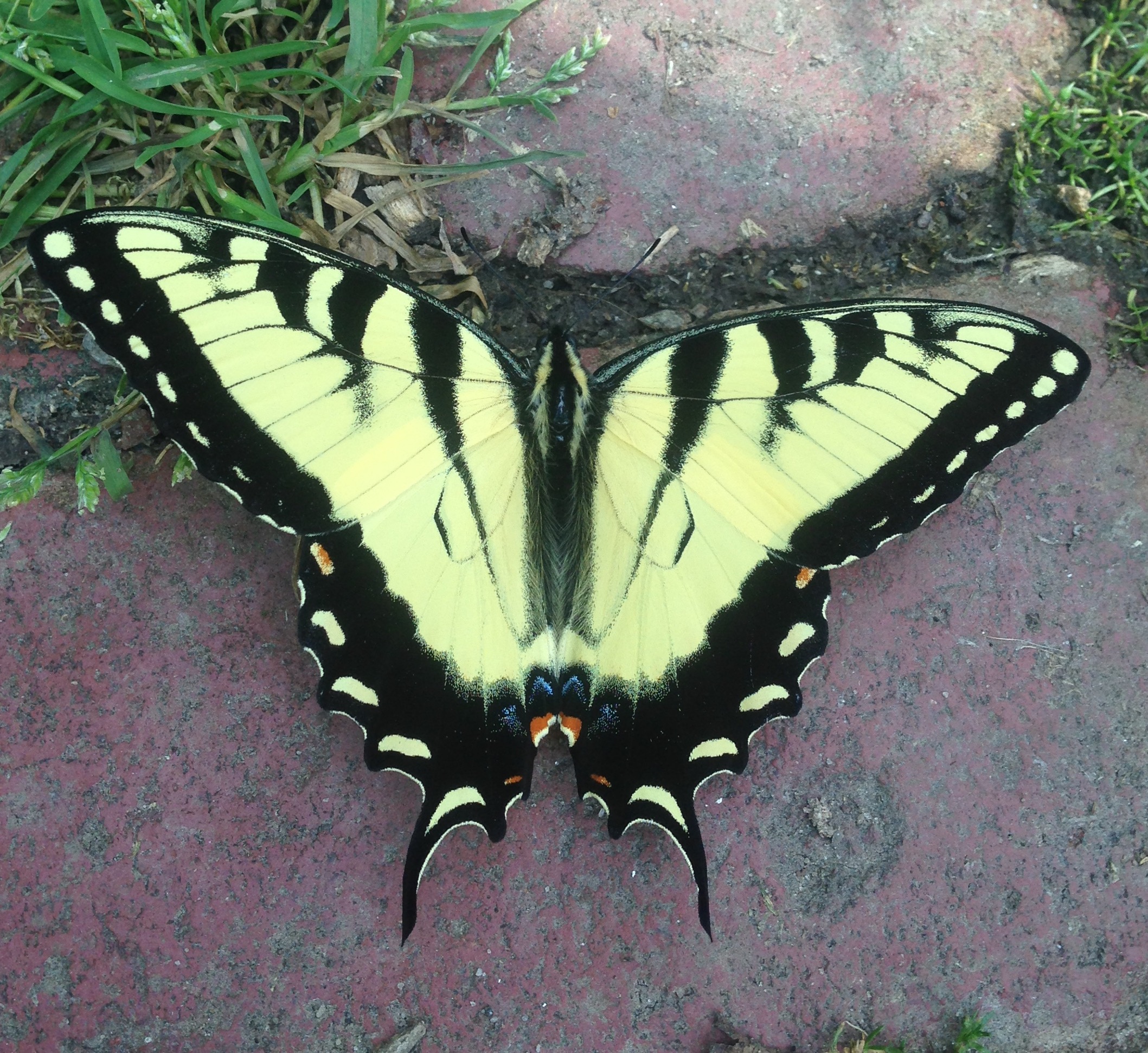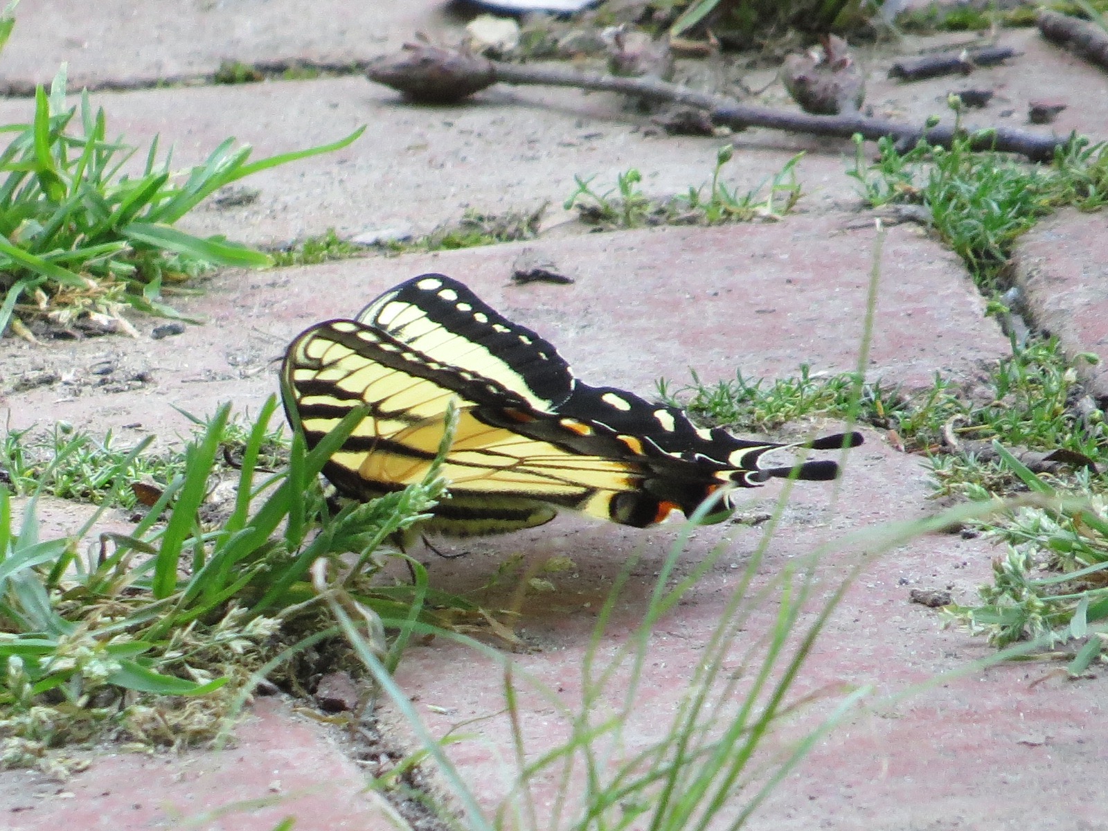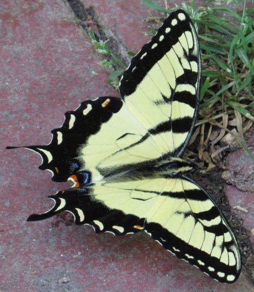 Enjoy these images of an Eastern Tiger Swallowtail — which spent a good deal of time drinking (?) out of the surprisingly fecund cracks between the bricks in Prospect Park — as I slip out this morning from behind the Backyard and Beyond desk to get married.