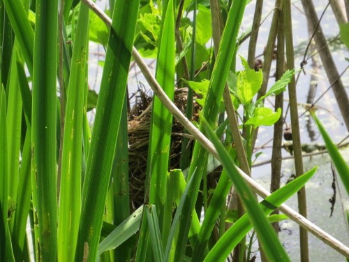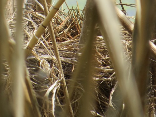 Red-winged Blackbird. Lots of grassy-sedgy material in these whirling constructions.